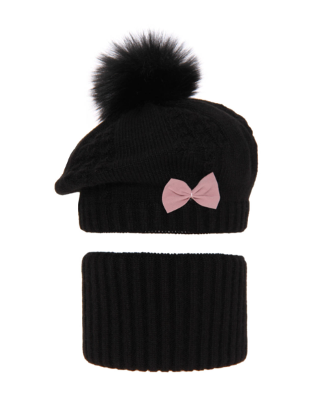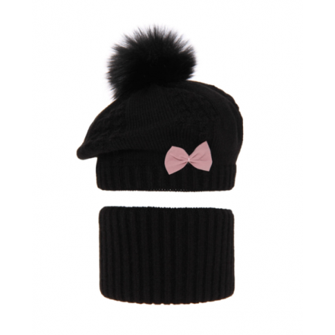 Komplet dla dziewczynki Beret + Komin Amora Black