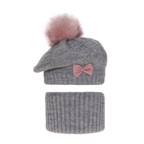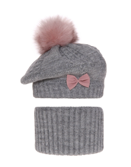 Komplet dla dziewczynki Beret + Komin Amora Grey