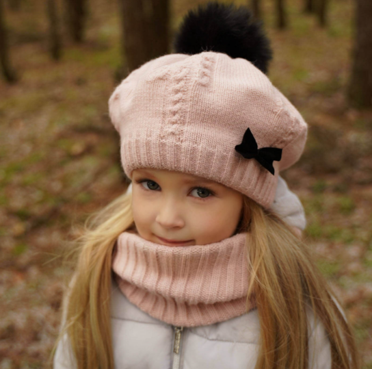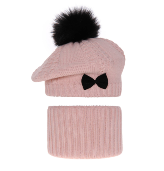 Komplet dla dziewczynki Beret + Komin Amora Pink