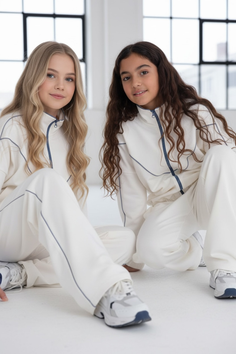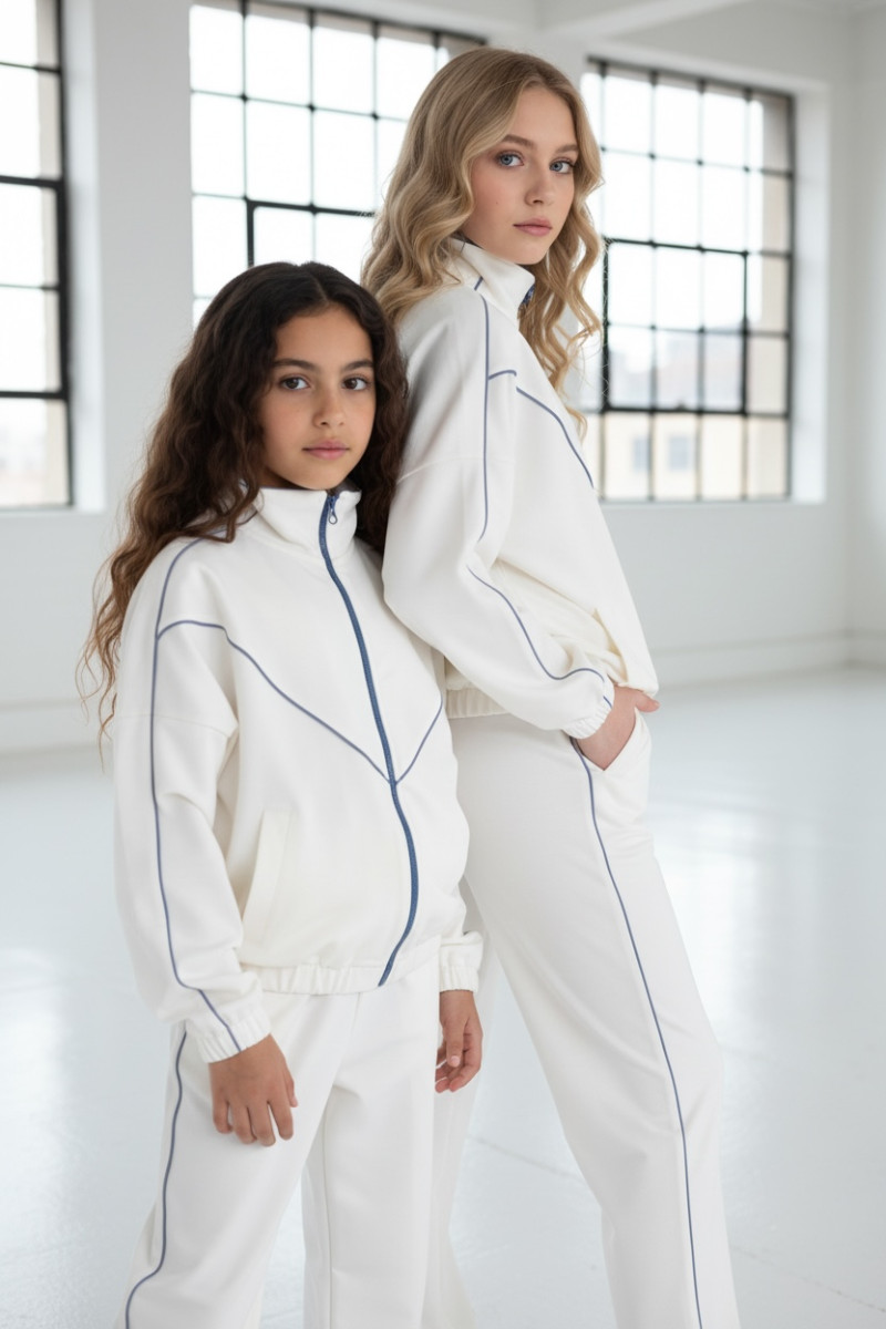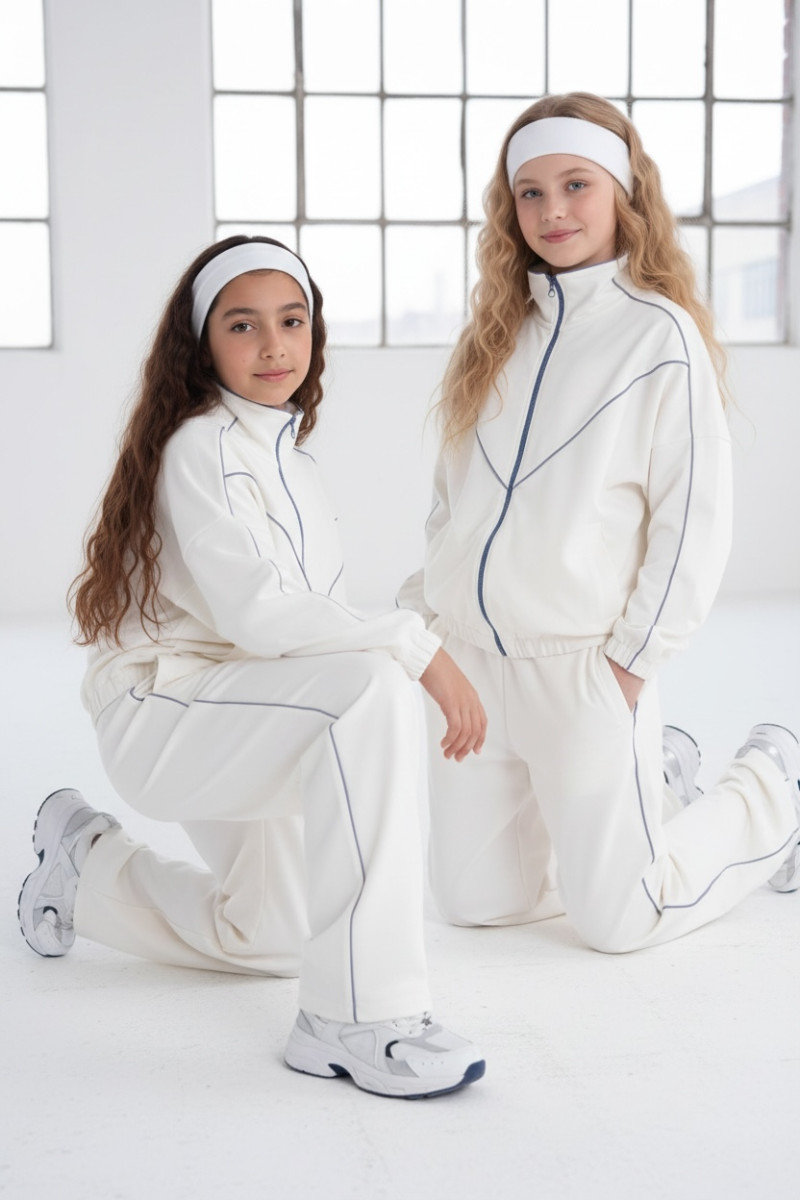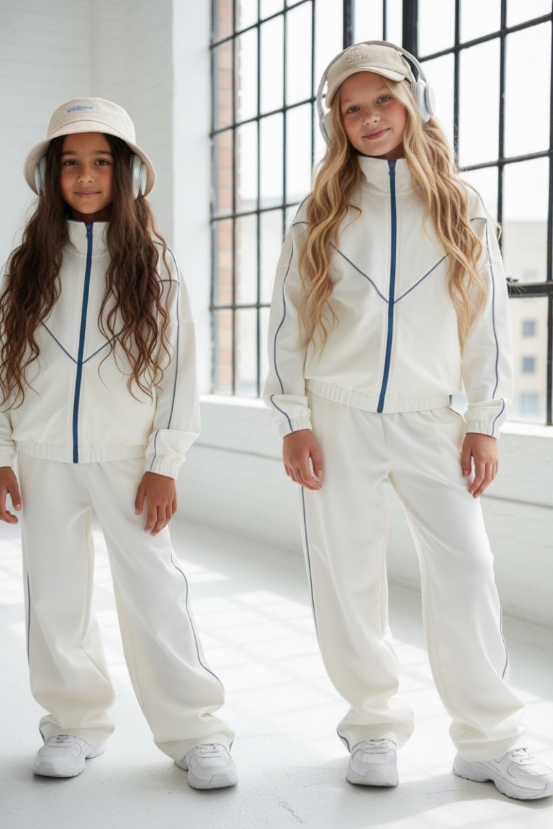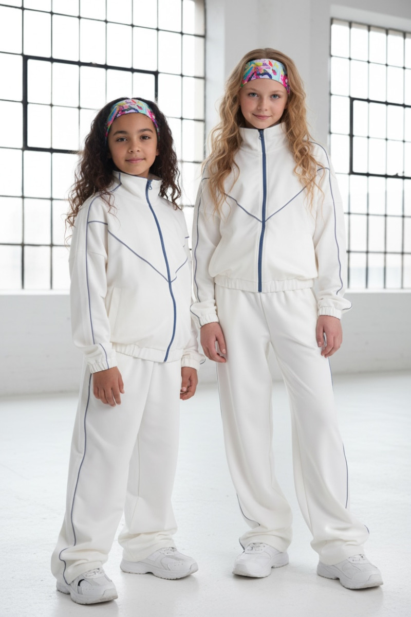 Komplet dla dziewczynki bluza rozpinana i spodnie Relax Airport Ecru