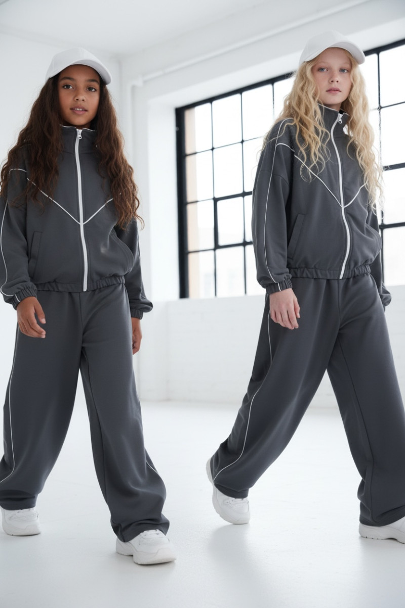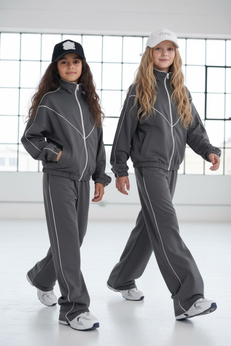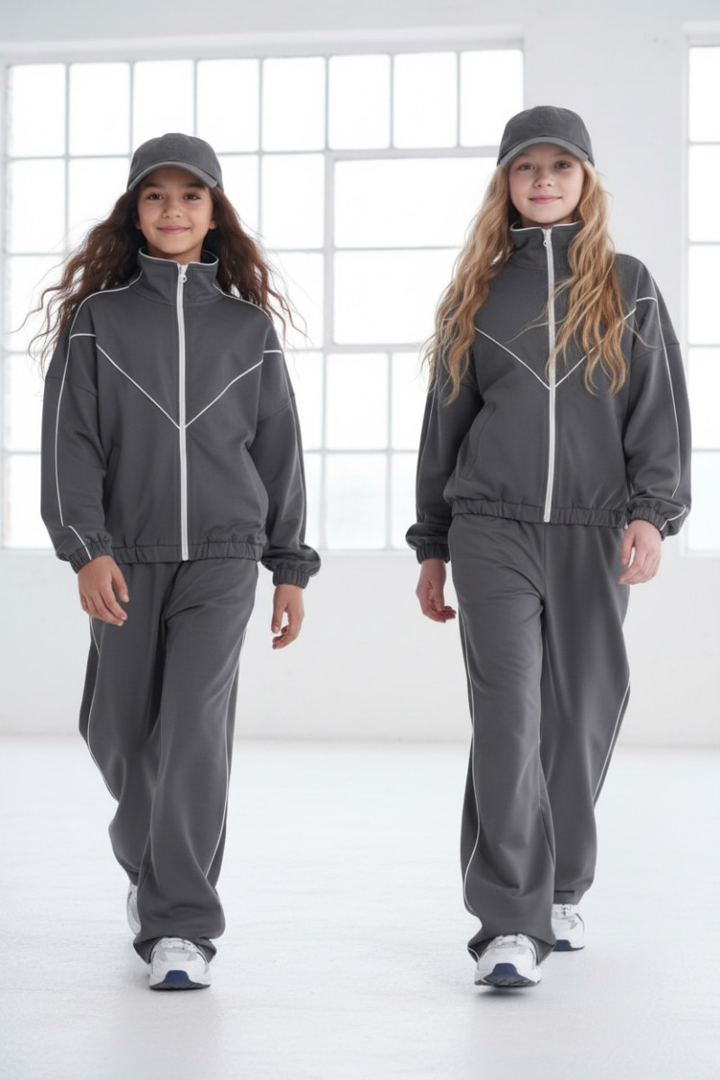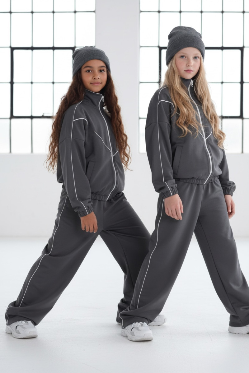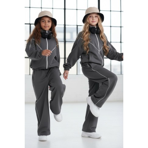 Komplet dla dziewczynki bluza rozpinana i spodnie Relax Airport Szary