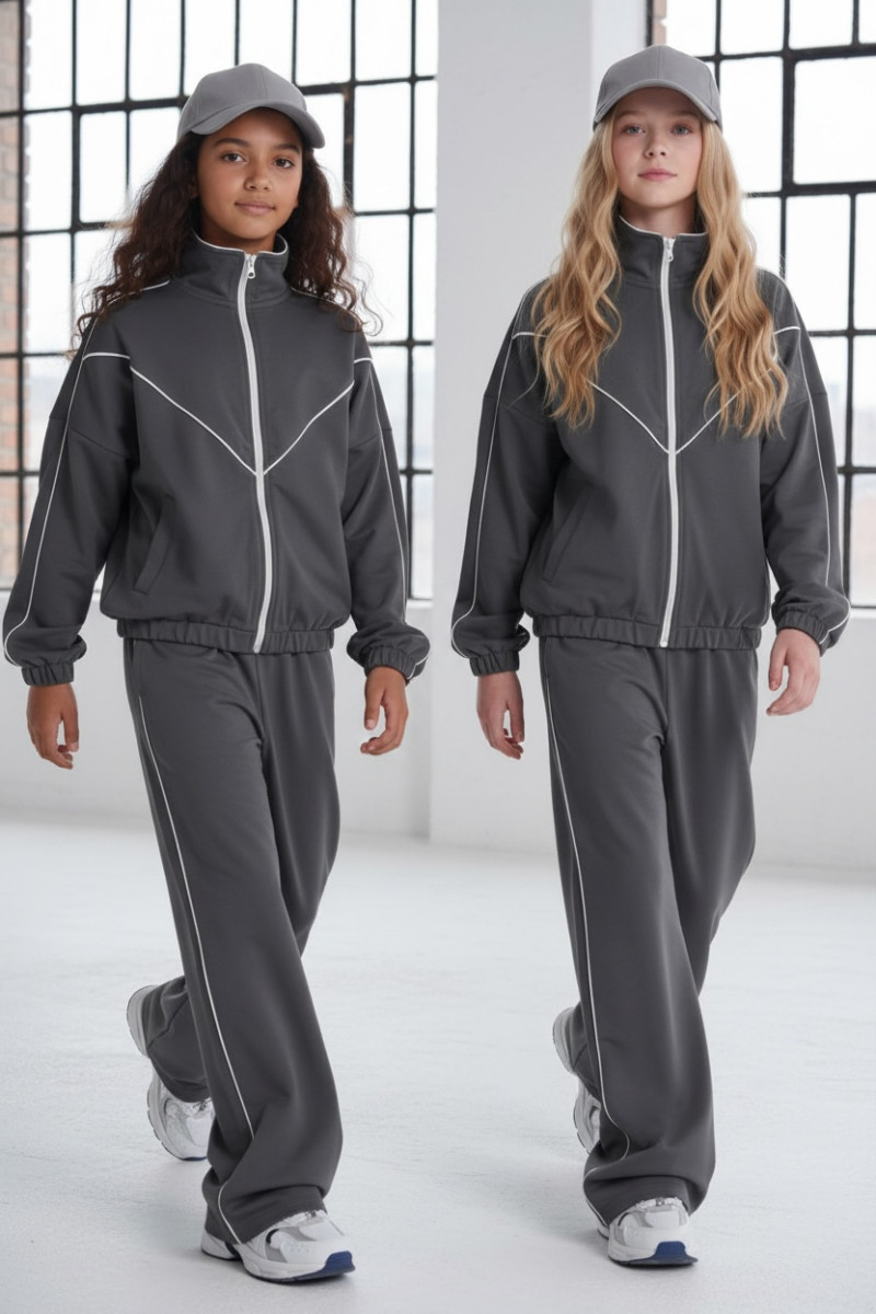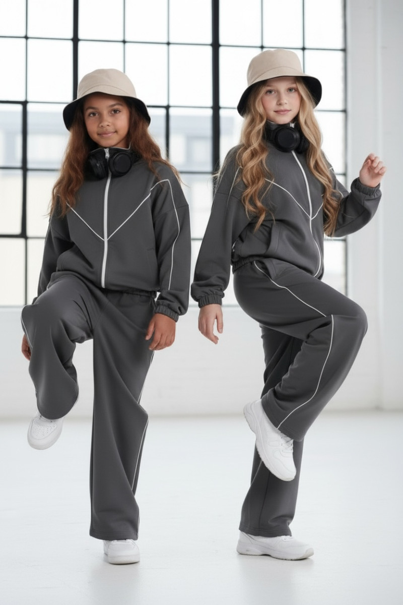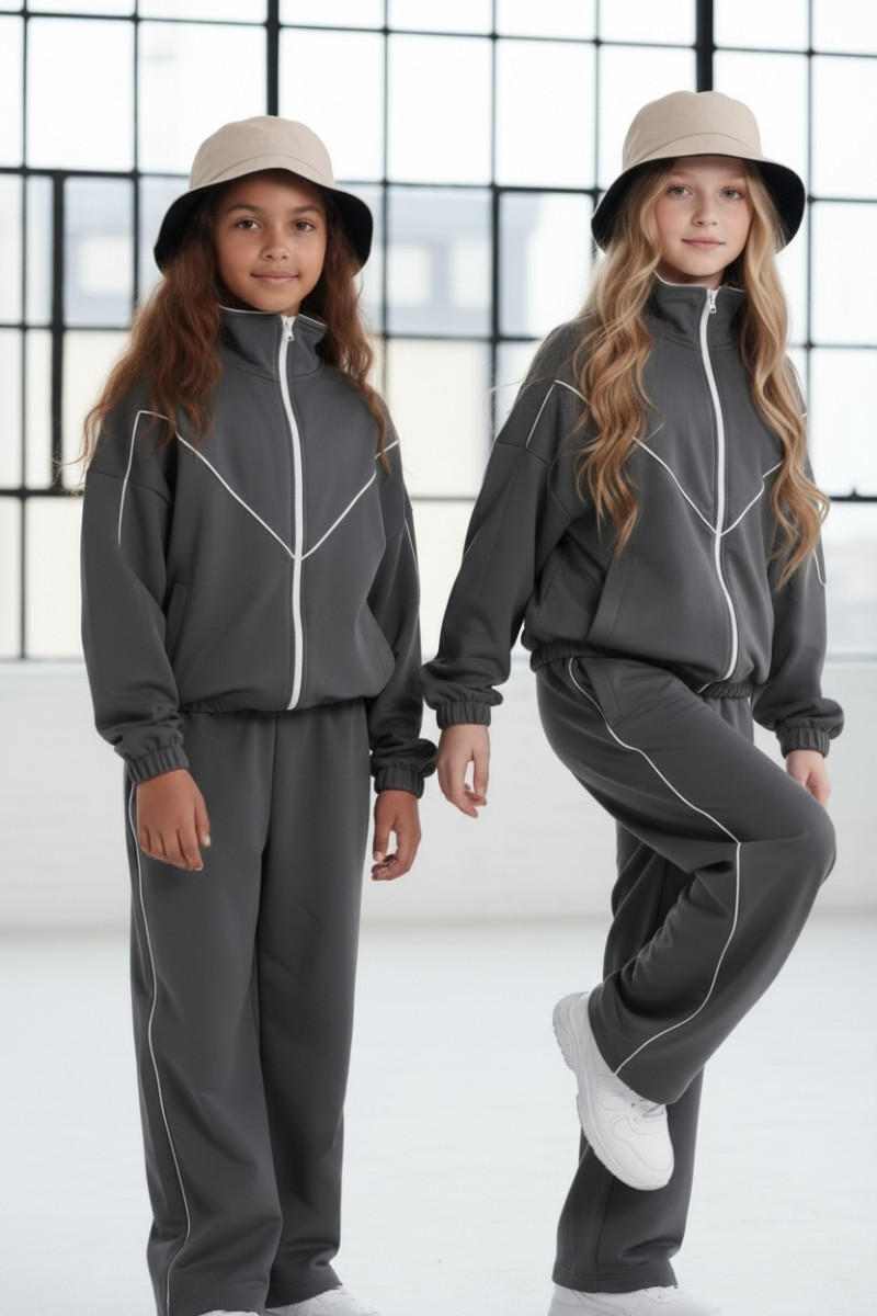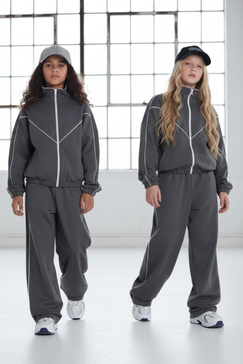 Komplet dla dziewczynki bluza rozpinana i spodnie Relax Airport Szary