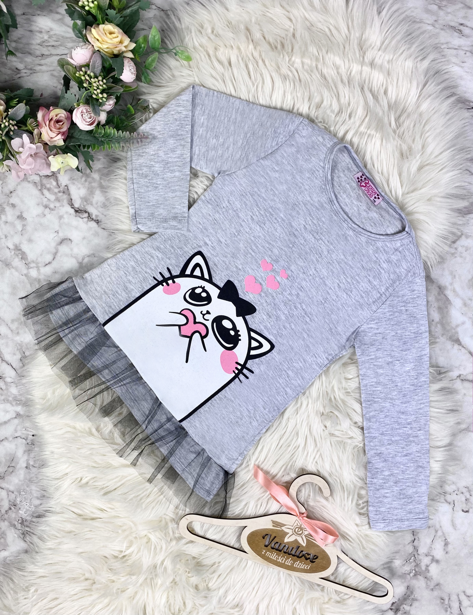 • bluzka/tunika bawełniana z nadrukiem słodkiego kotka