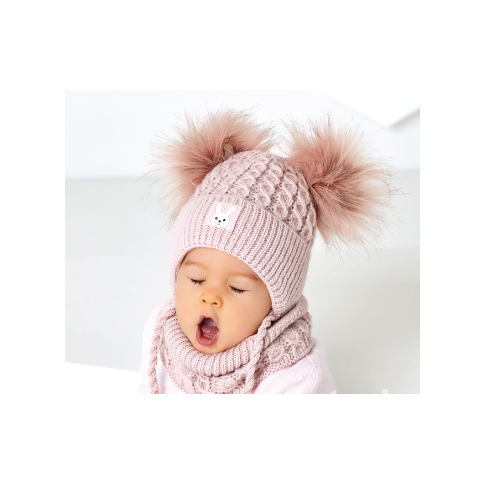 Komplet Czapka + Komin Bunny Pink