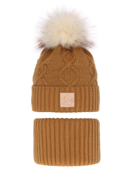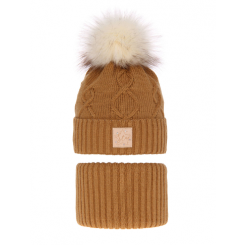 Komplet dla dziewczynki czapka + komin Dina Camel