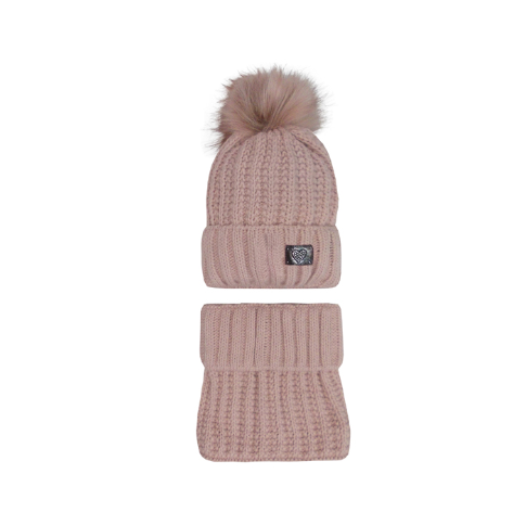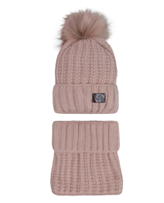Komplet dla dziewczynki czapka + komin Heart Pink
