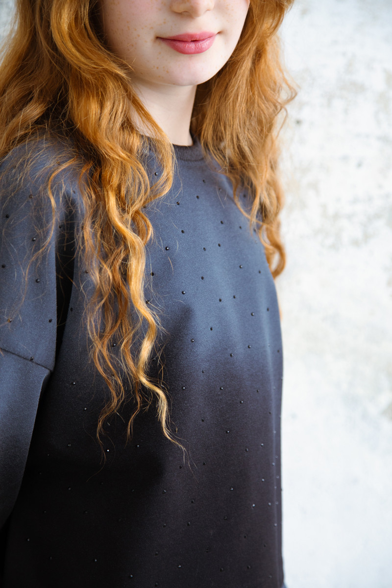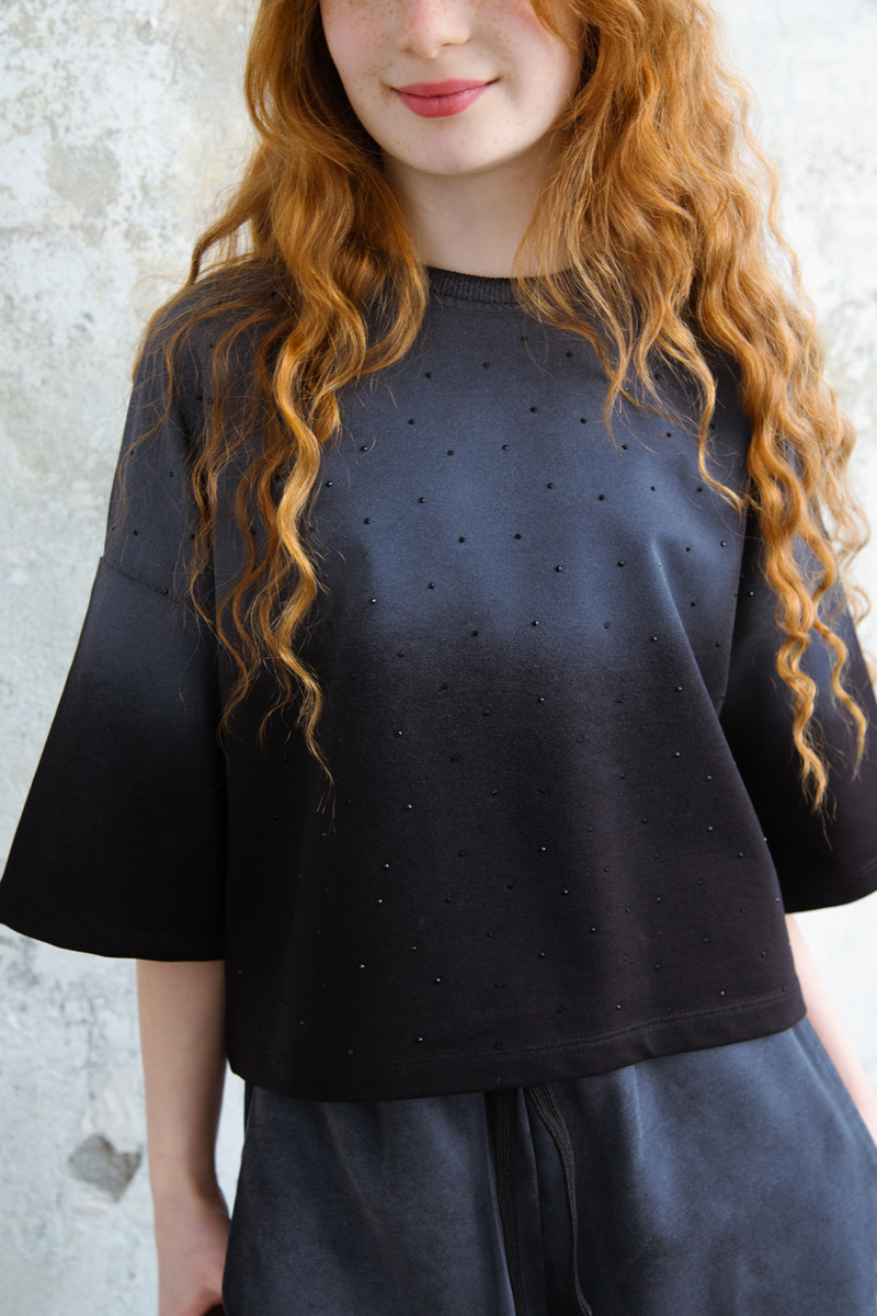 • bluzka ozdobiona modnymi czarnymi cyrkoniami