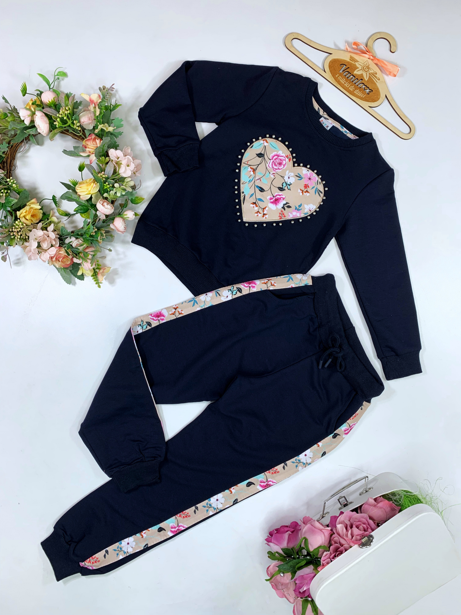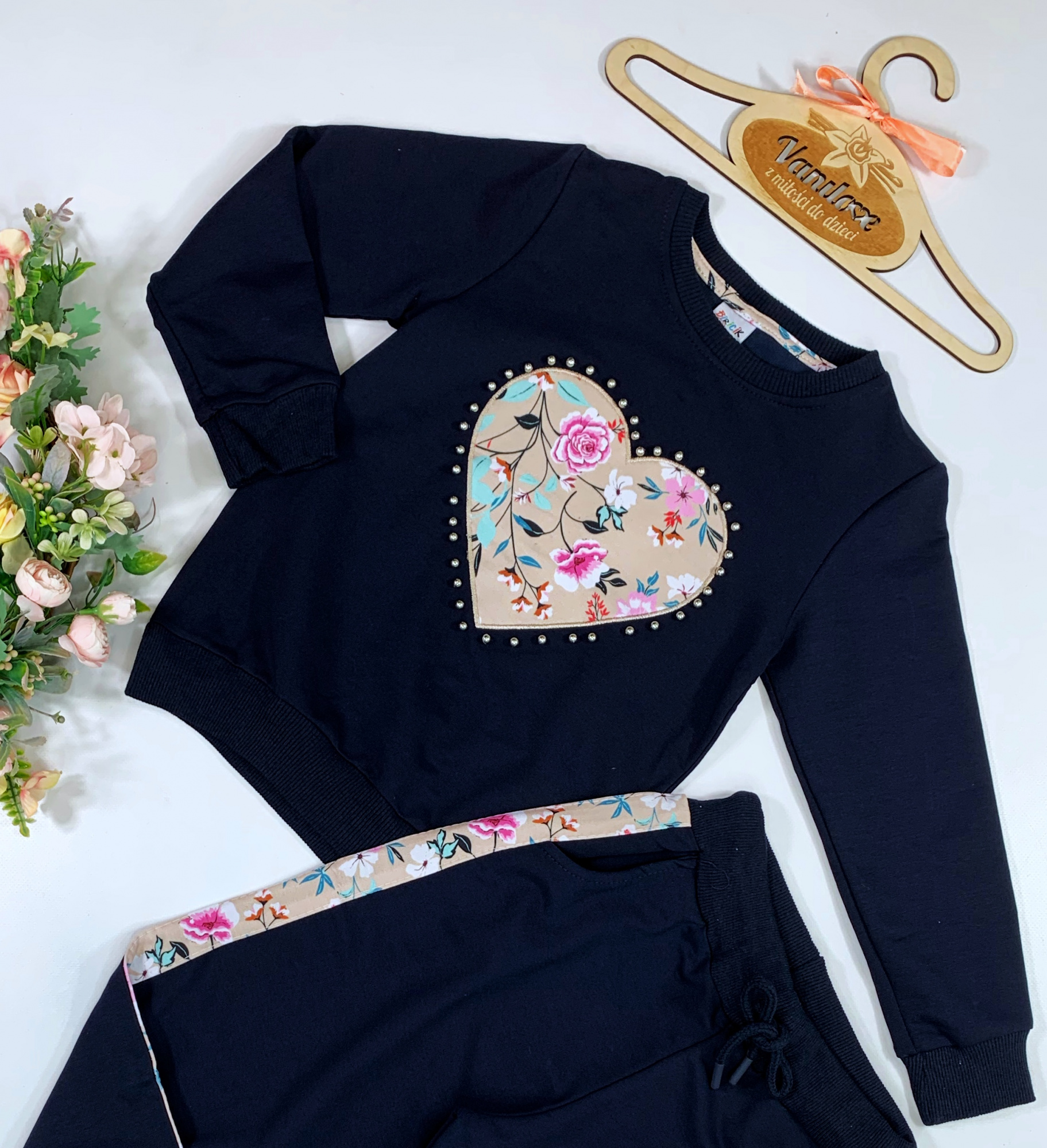 - bluza ozdobiona wyszytym sercem w kwiaty i dżetami
