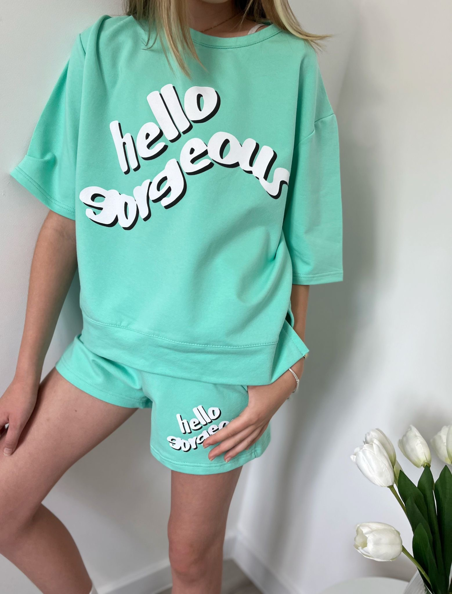 szorty z gumką w pasie i kieszeniami oraz nadrukiem