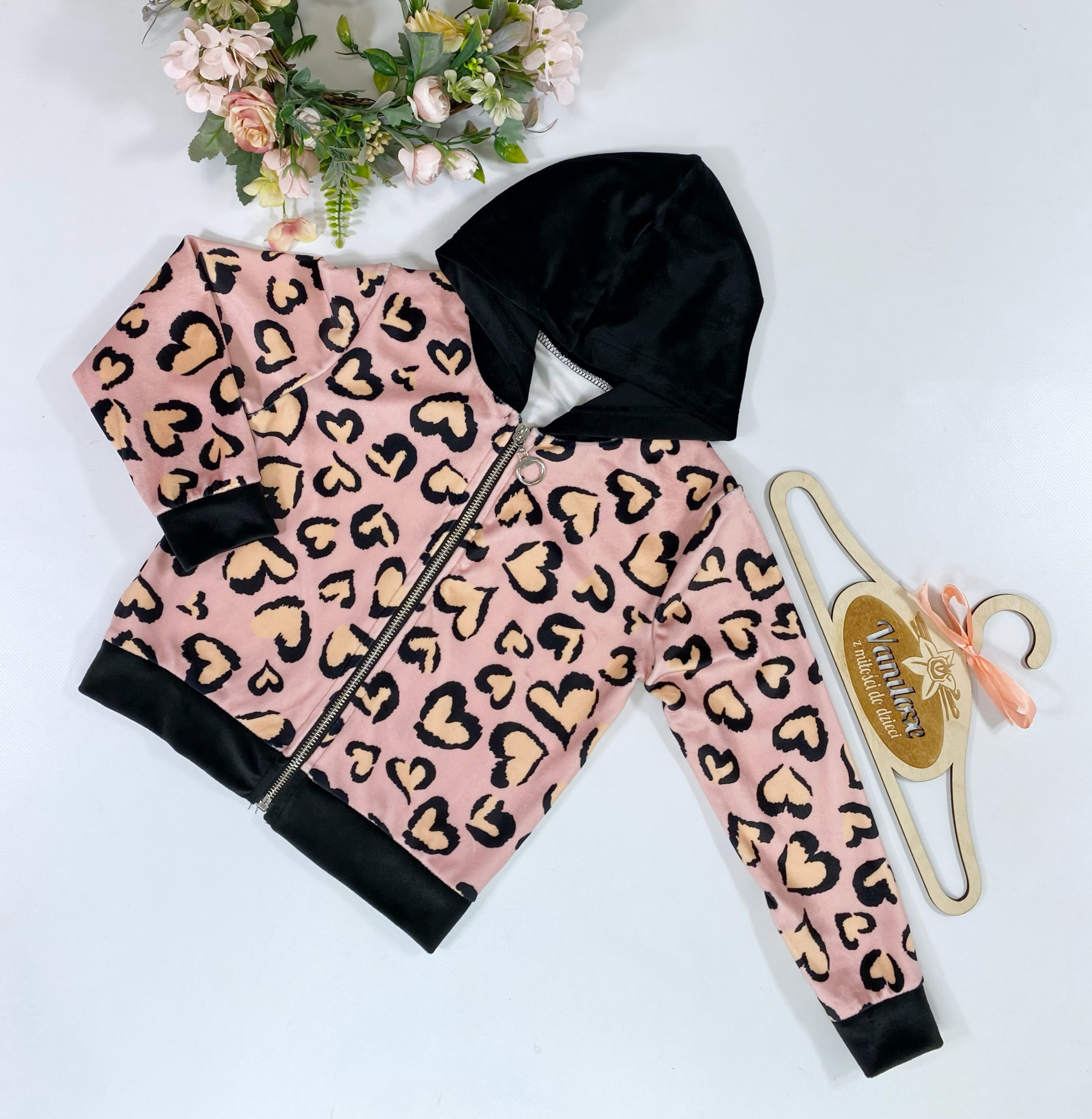 - bluza zapinana na zamek, ozdobiona serduszkami