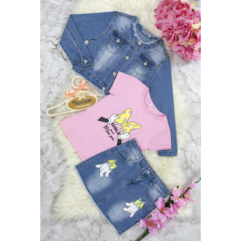 • w komplecie: kurtka, bluzka z krótkim rękawem, spódniczka