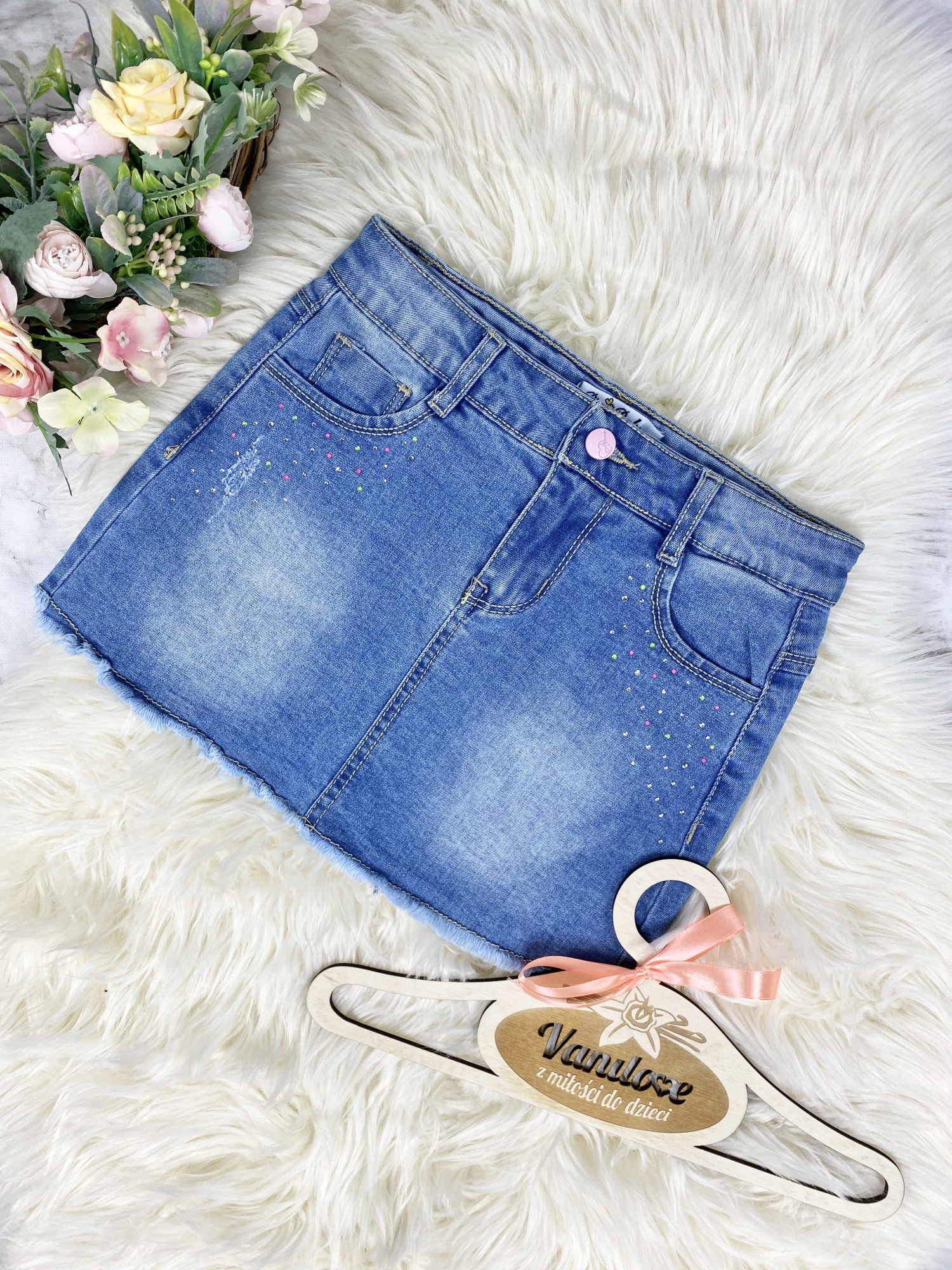 - spódnica zdobiona uroczymi nadrukami oraz kolorowymi cekinami