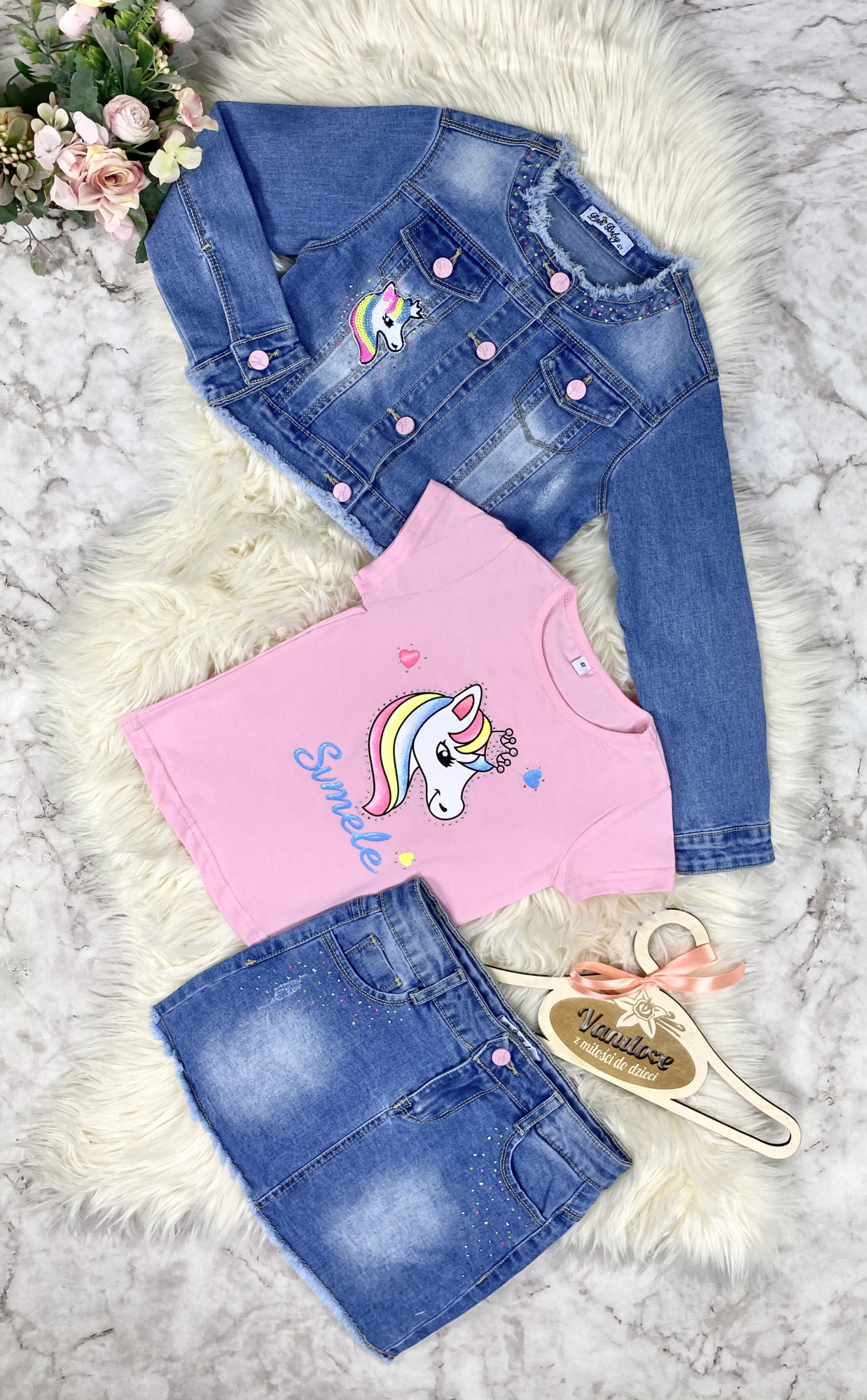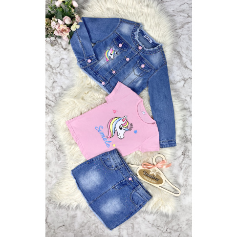 Komplet dla Dziewczynki Jeans Unicorn - Pink