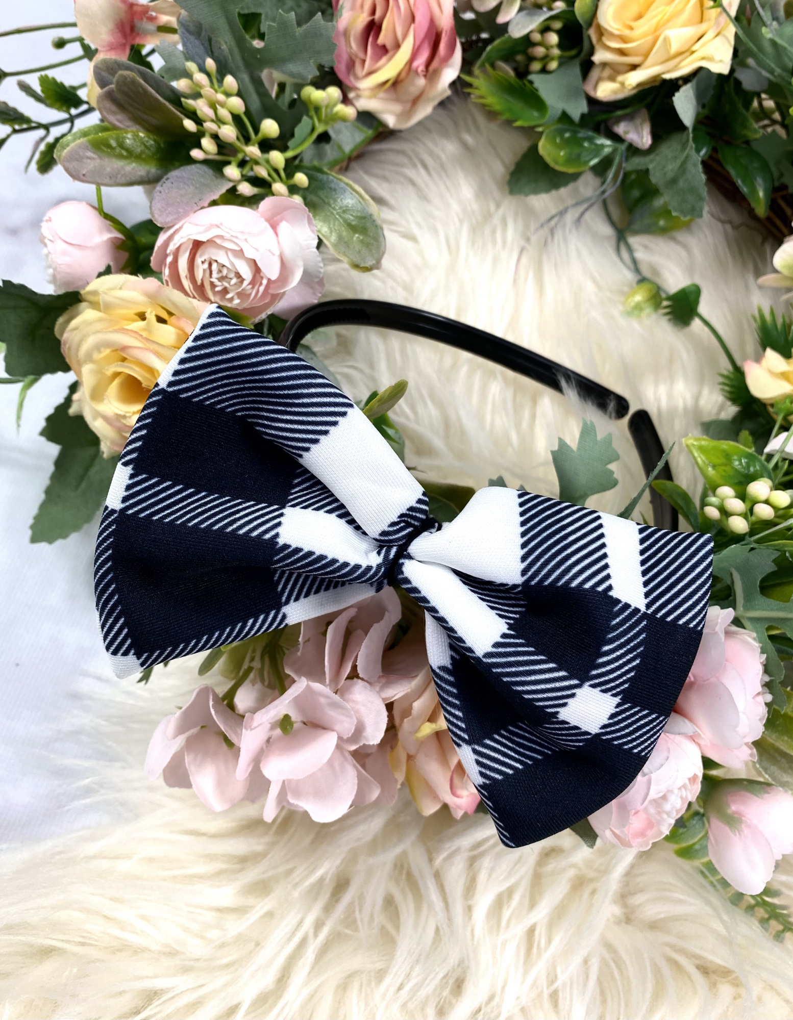 • spójności stylizacji nadaje opaska z czarną kokardą w kratkę