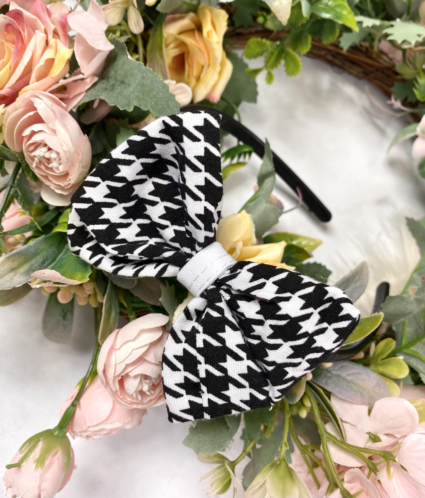 - opaska z kokardą w czarno-białą pepitkę nadaje spójności stylizacji