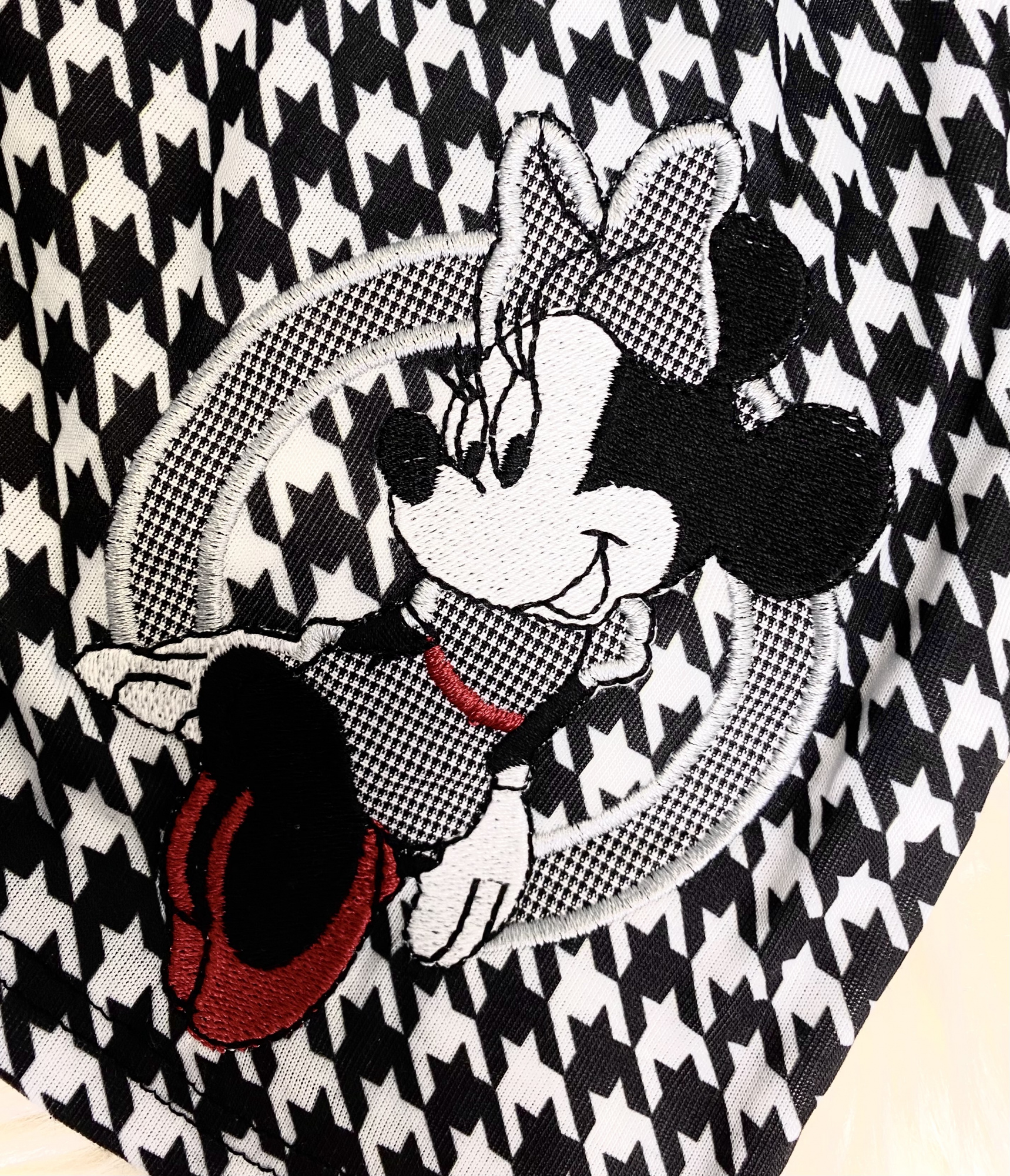 - spodenki w pepitkę posiadają z boku dwie kieszenie oraz naszywkę myszki Minnie