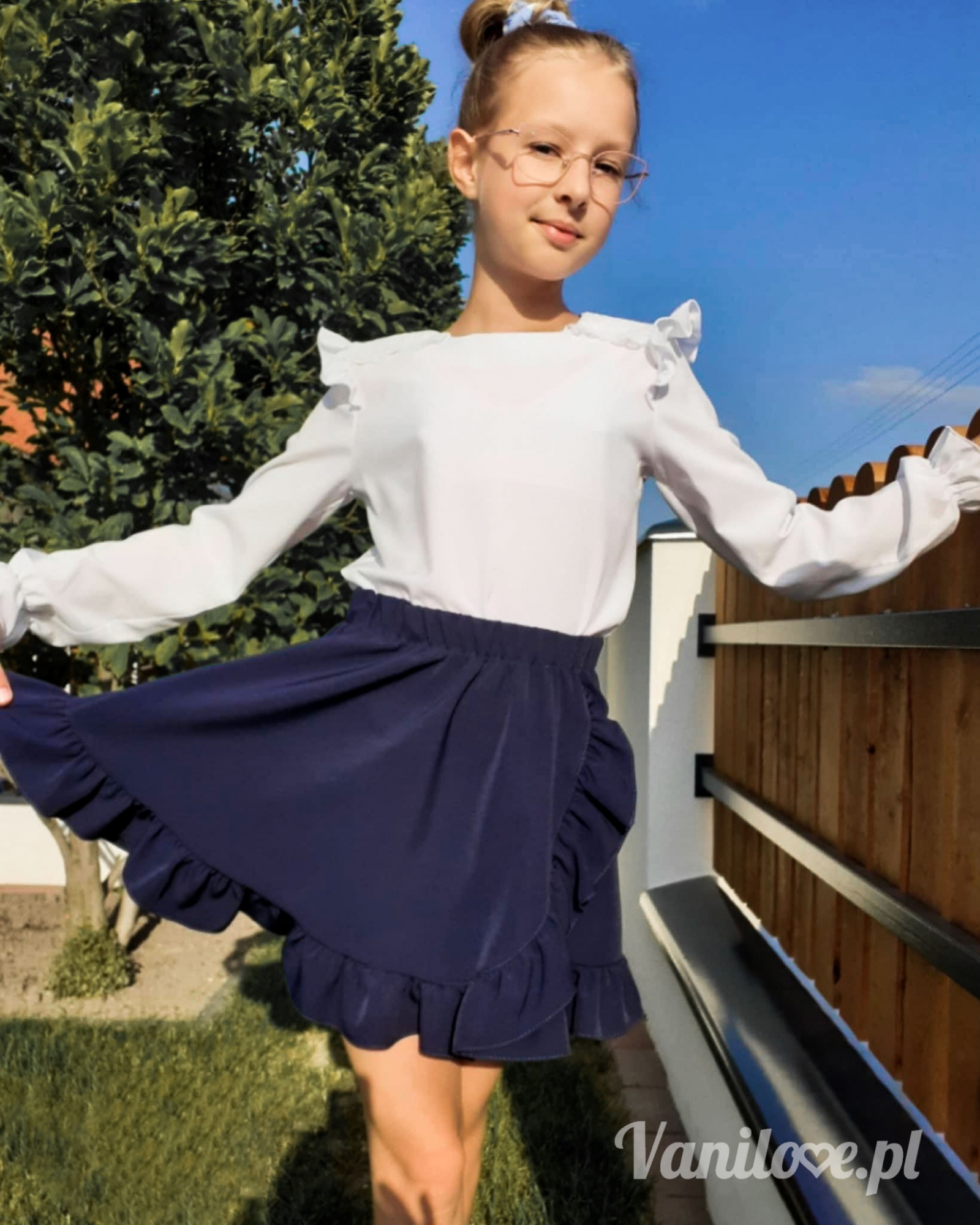 - spódniczka z falbanką w kolorze granatowym