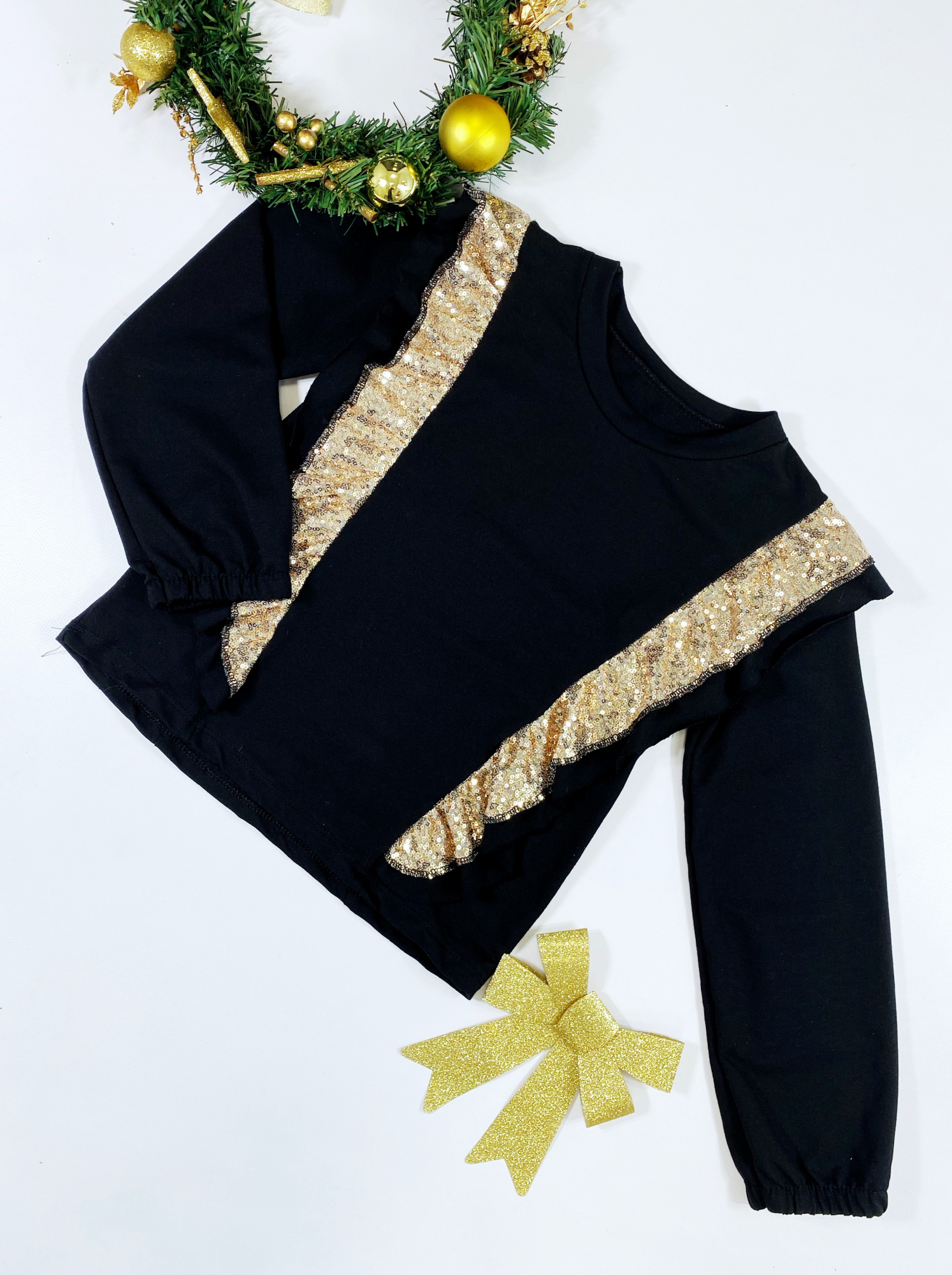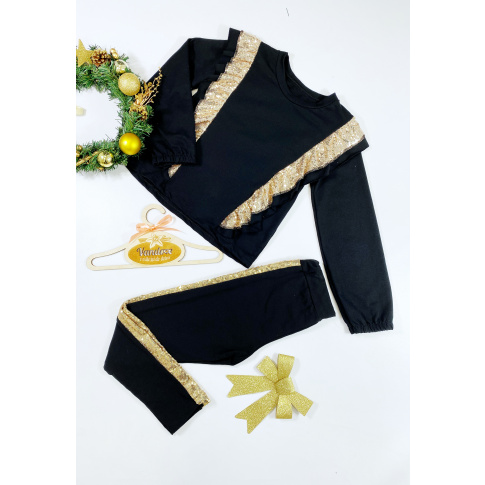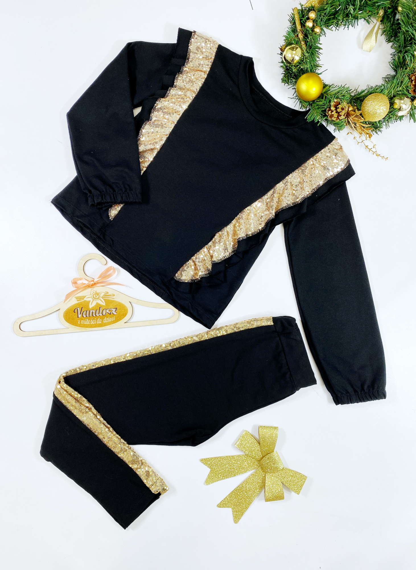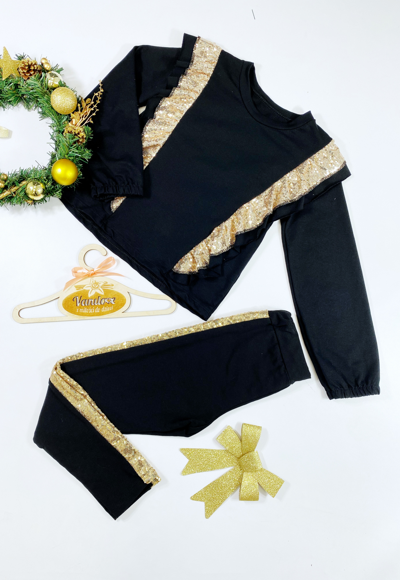 • spodnie z prostą nogawką, ozdobione cekinkowym lampasem