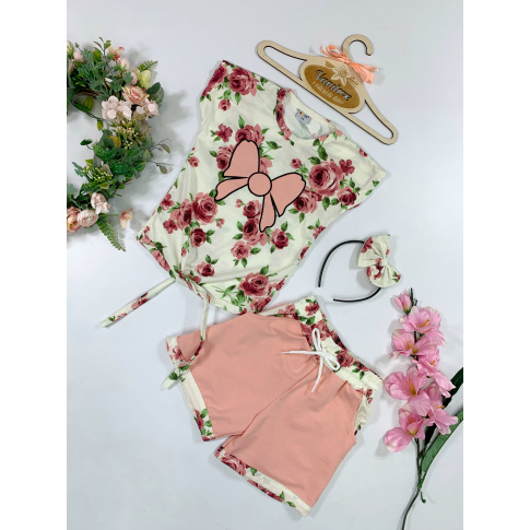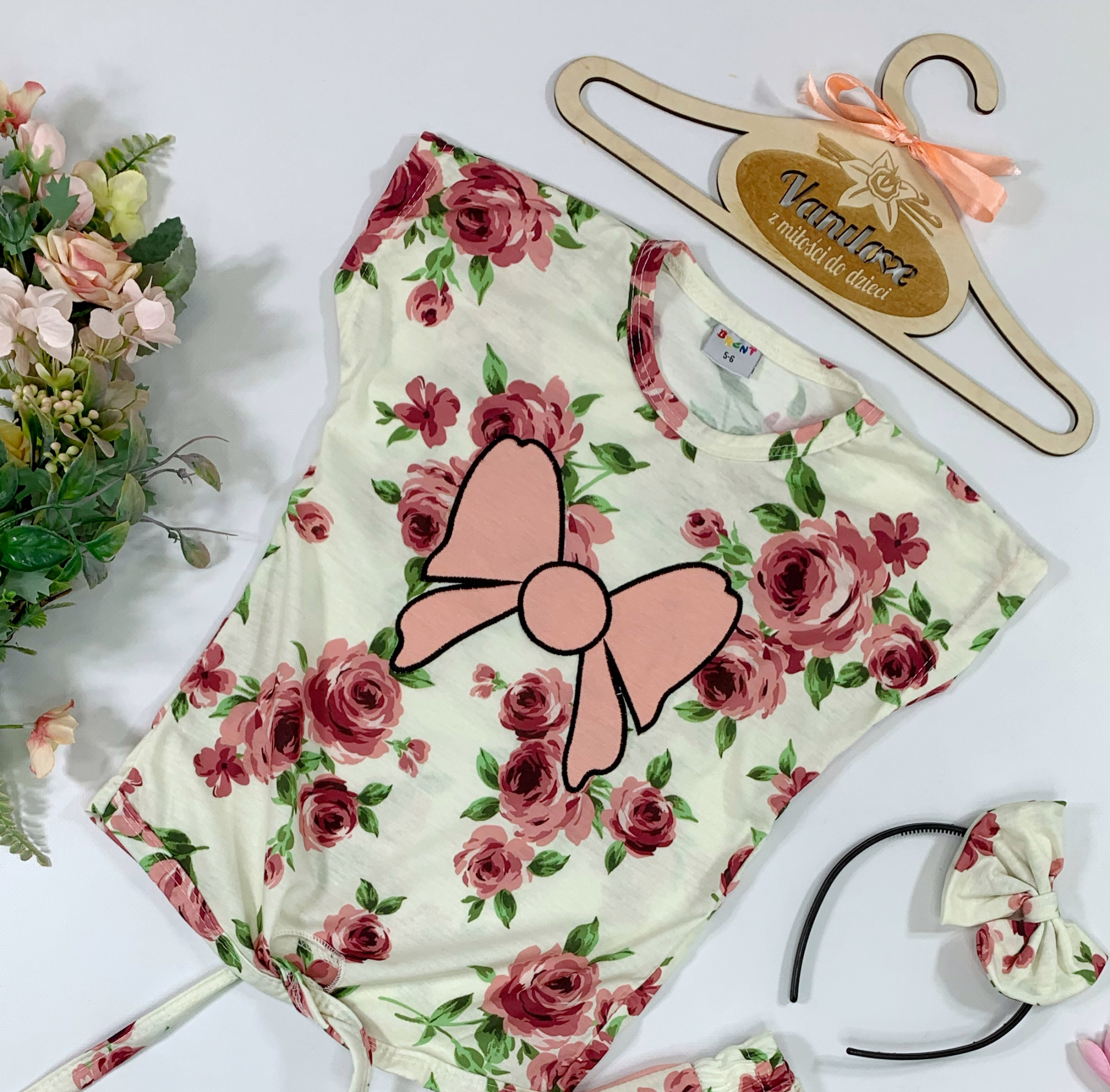 • bluzka z różanym printem i naszywką kokardki, dodatkowo uroczo wiązana
