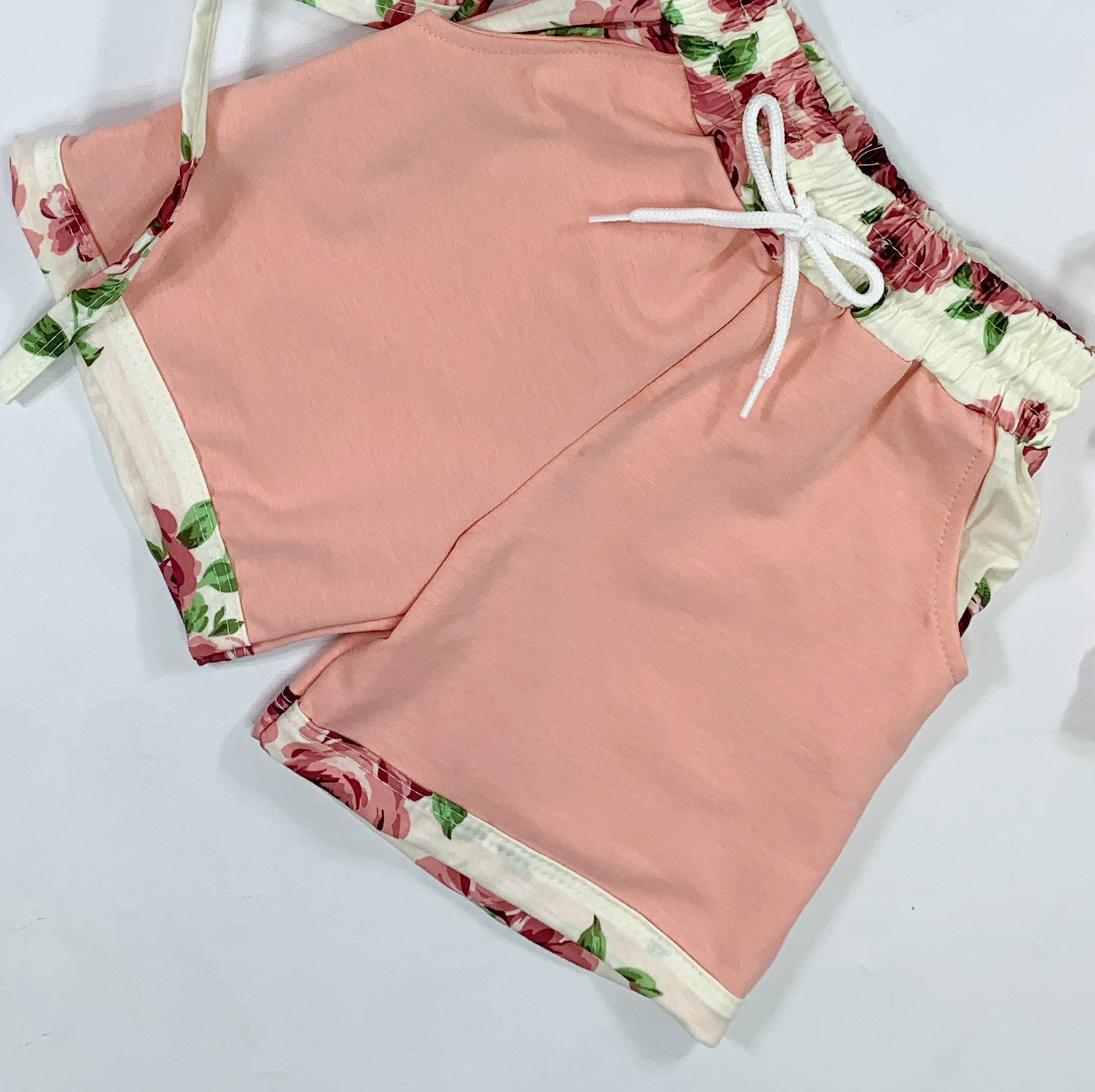 • spodenki posiadają elastyczną gumkę w pasie oraz ozdobne  wstawki z różami