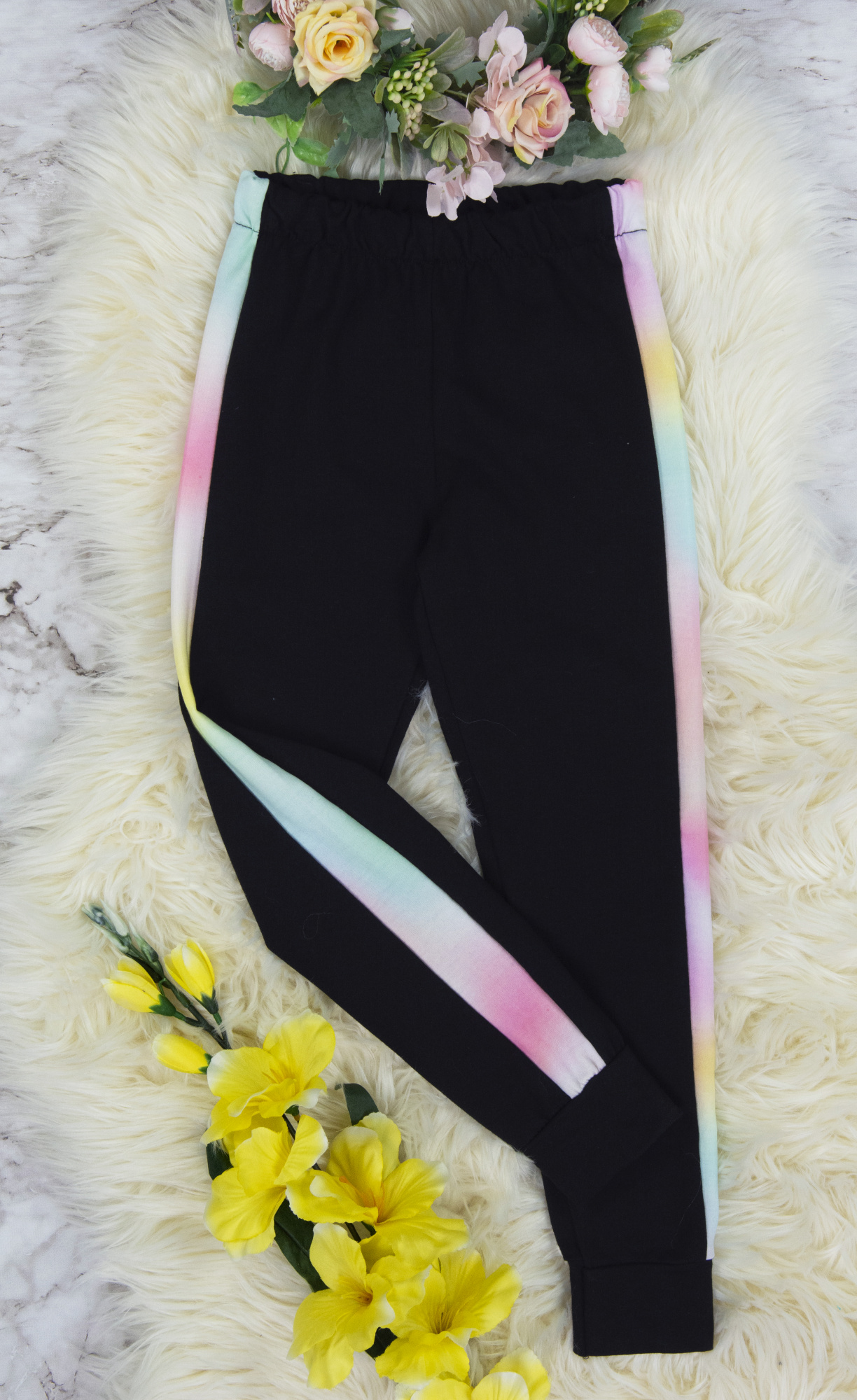 • spodnie posiadają elastyczną gumkę w pasie oraz kolorowe lampasy