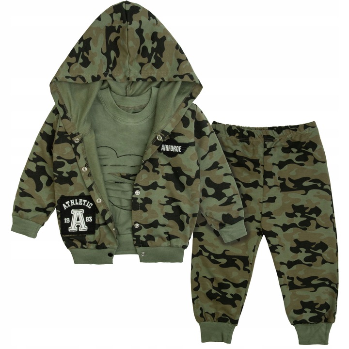 • komplet składający się z trzech części: bluza z kapturem, bluzka na długi rękaw oraz spodnie