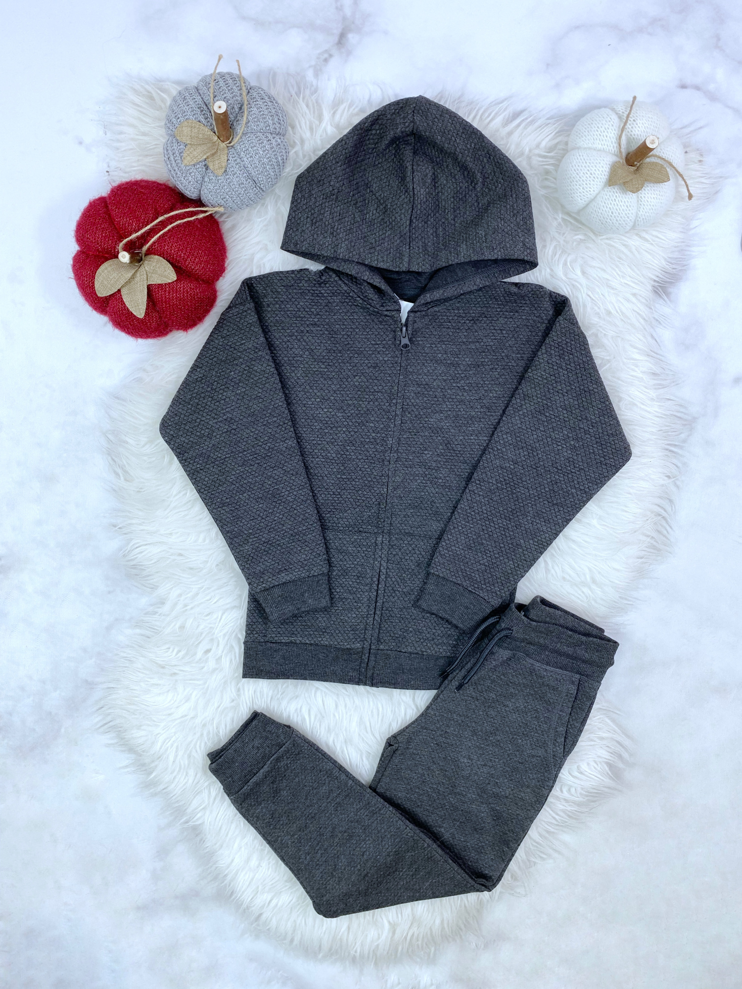• komplet składający się z dwóch części: bluza z kapturem,oraz spodnie