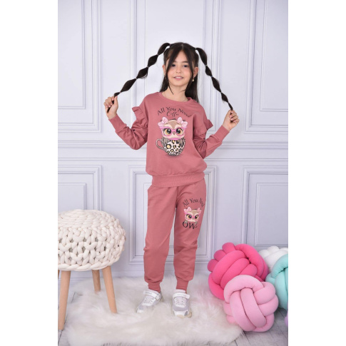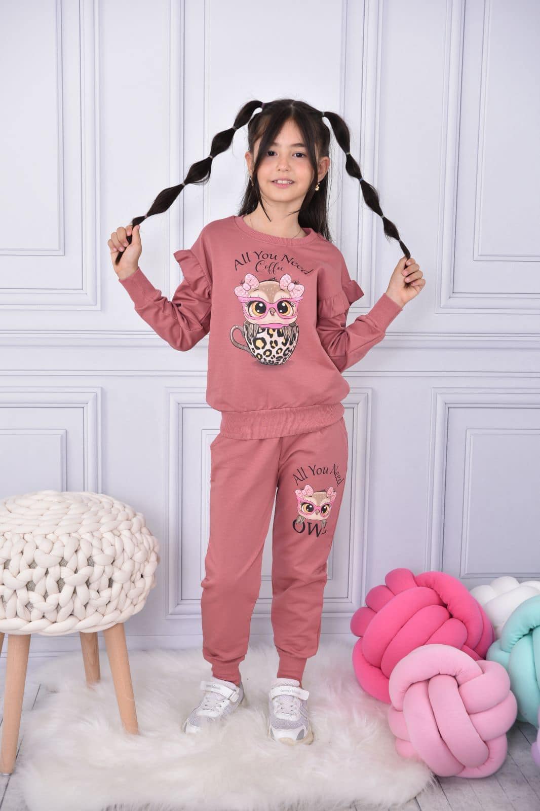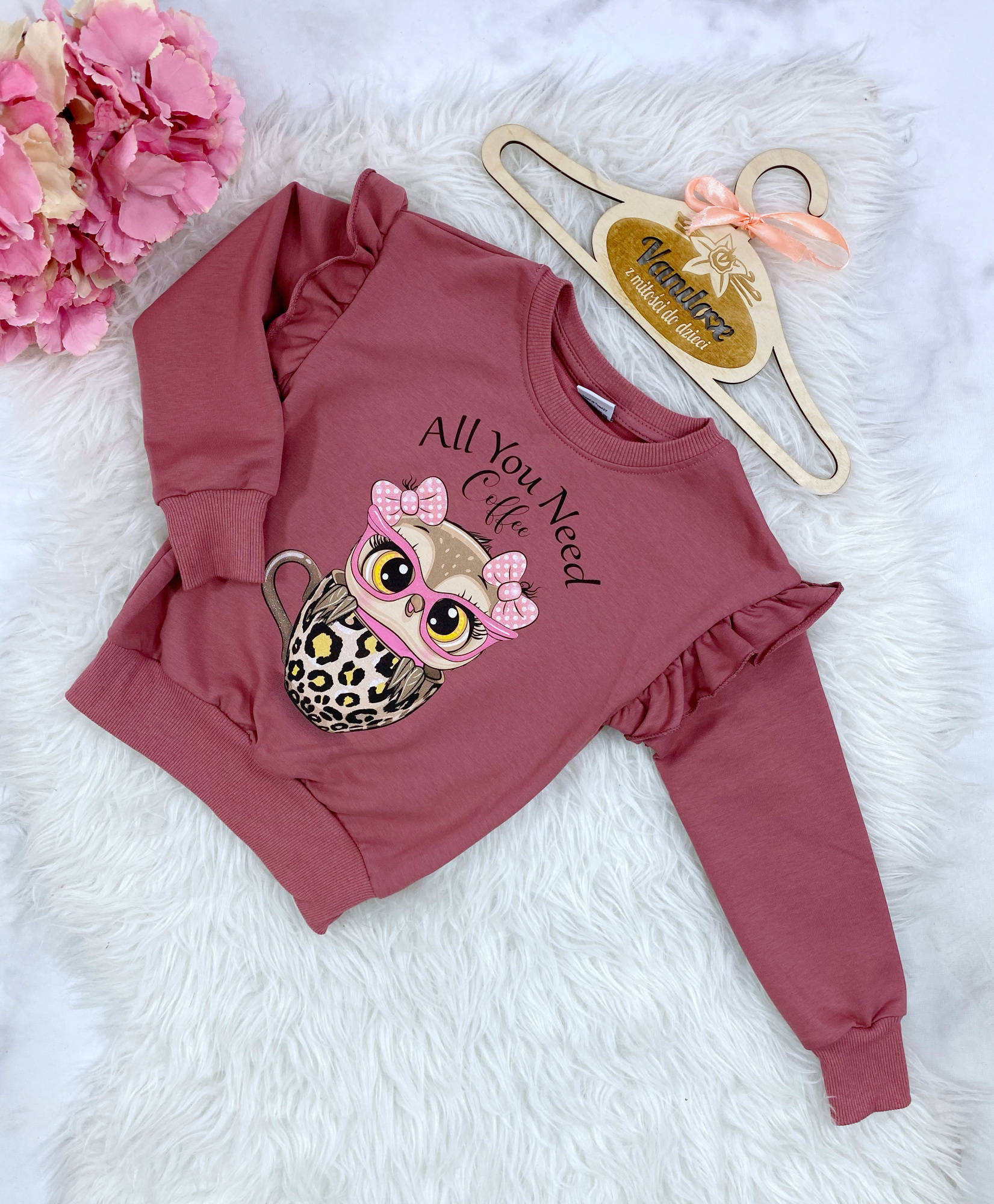 - bluza z uroczym nadrukiem sowy i ozdobnymi falbankami przy ramionach