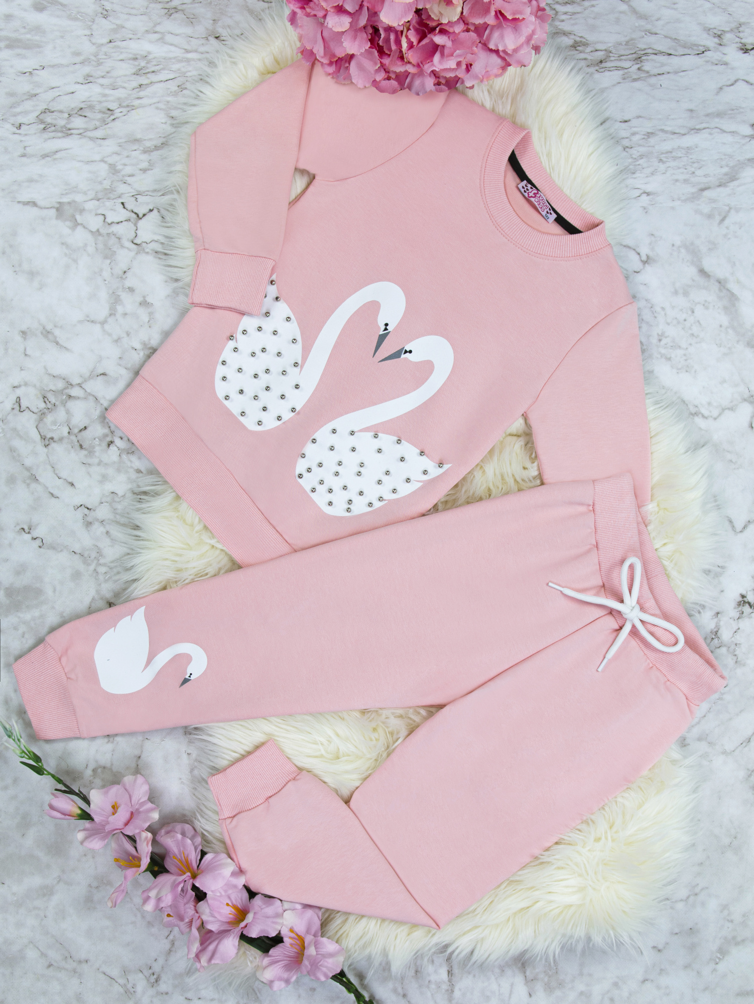 Komplet dresowy dla Dziewczynki Swan II Pearls - Różowy