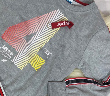 - bluza ozdobiona kolorową liczbą 4 i napisami