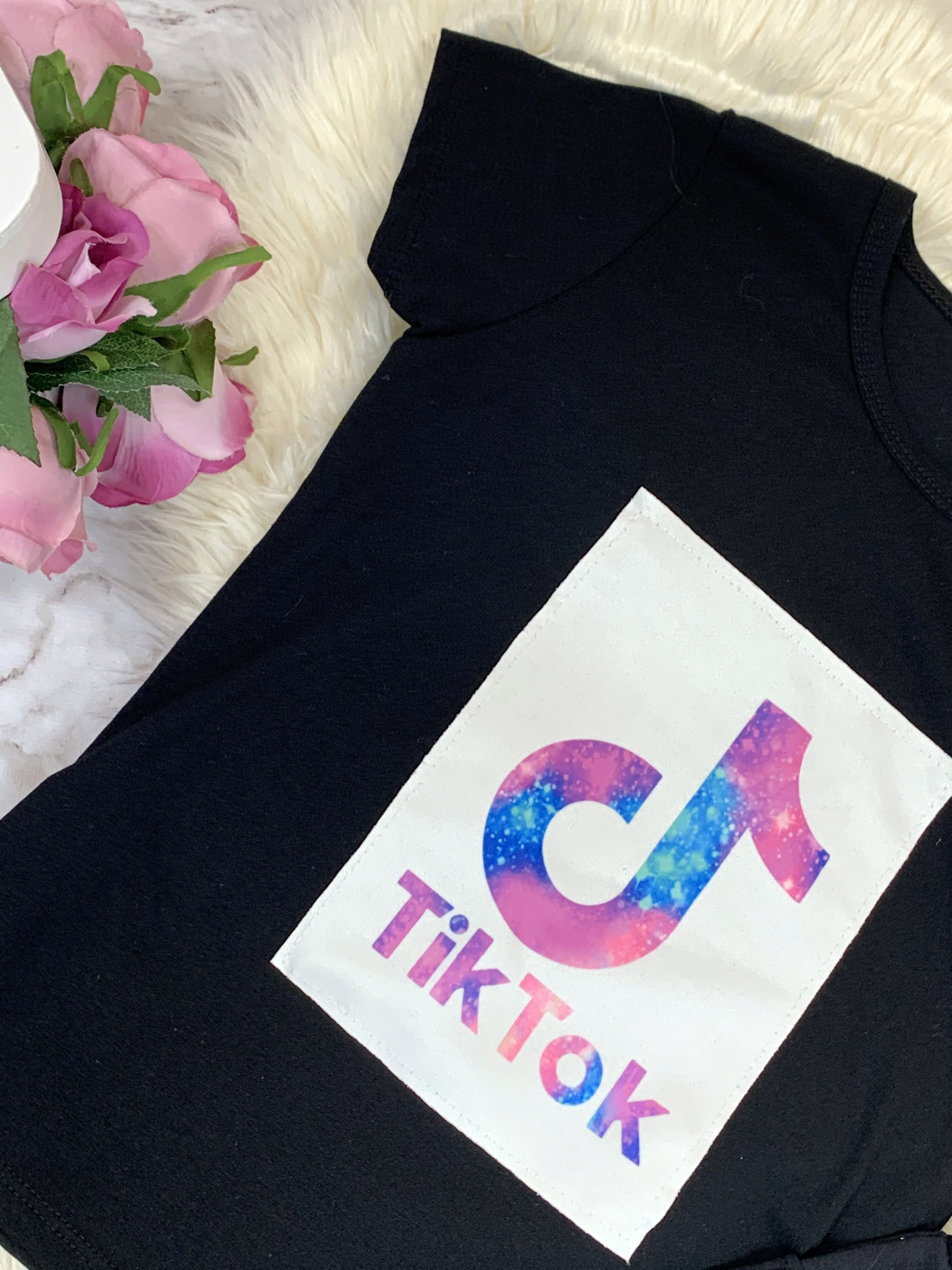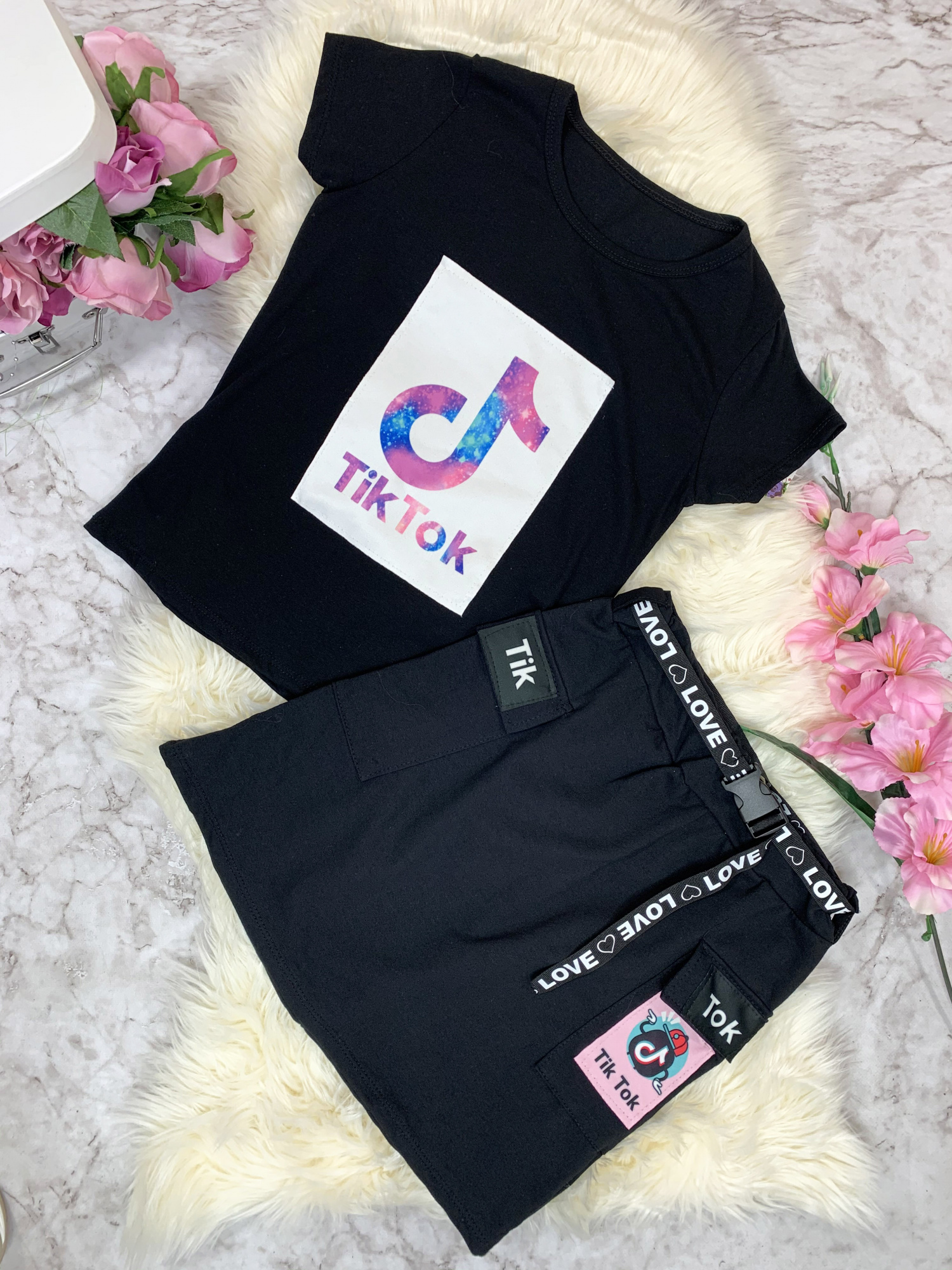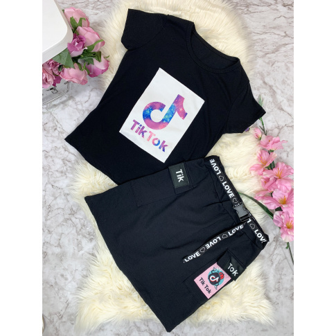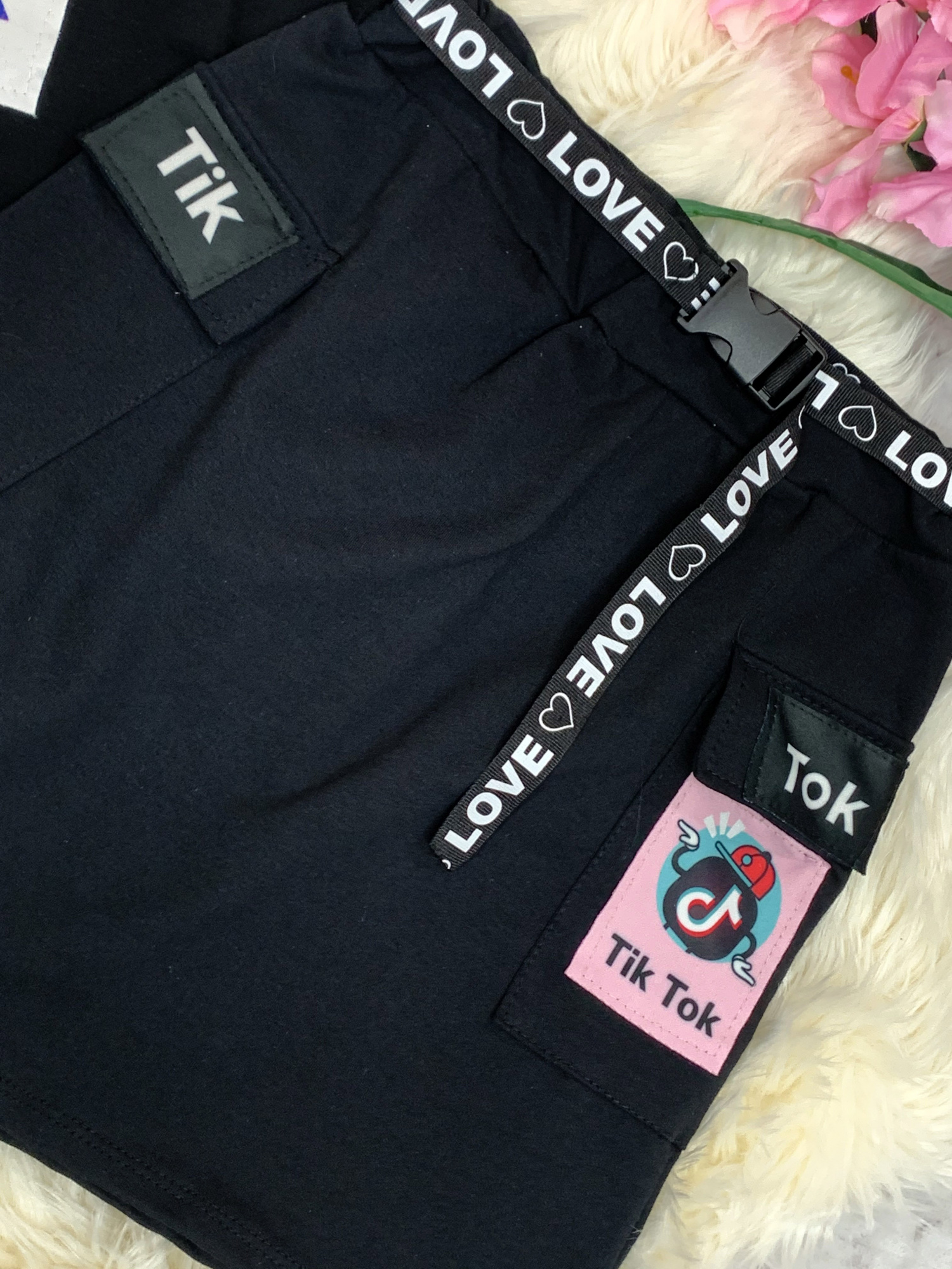 - spódniczka z nadrukiem Tik TOK i paseczkiem z napisami