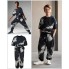 • luźne spodnie o szerokich nogawkach,z elastycznym pasem i ściągaczami na nogawkach