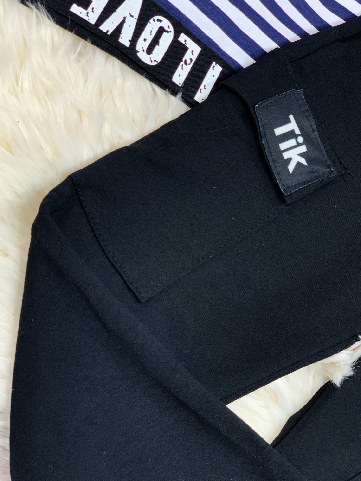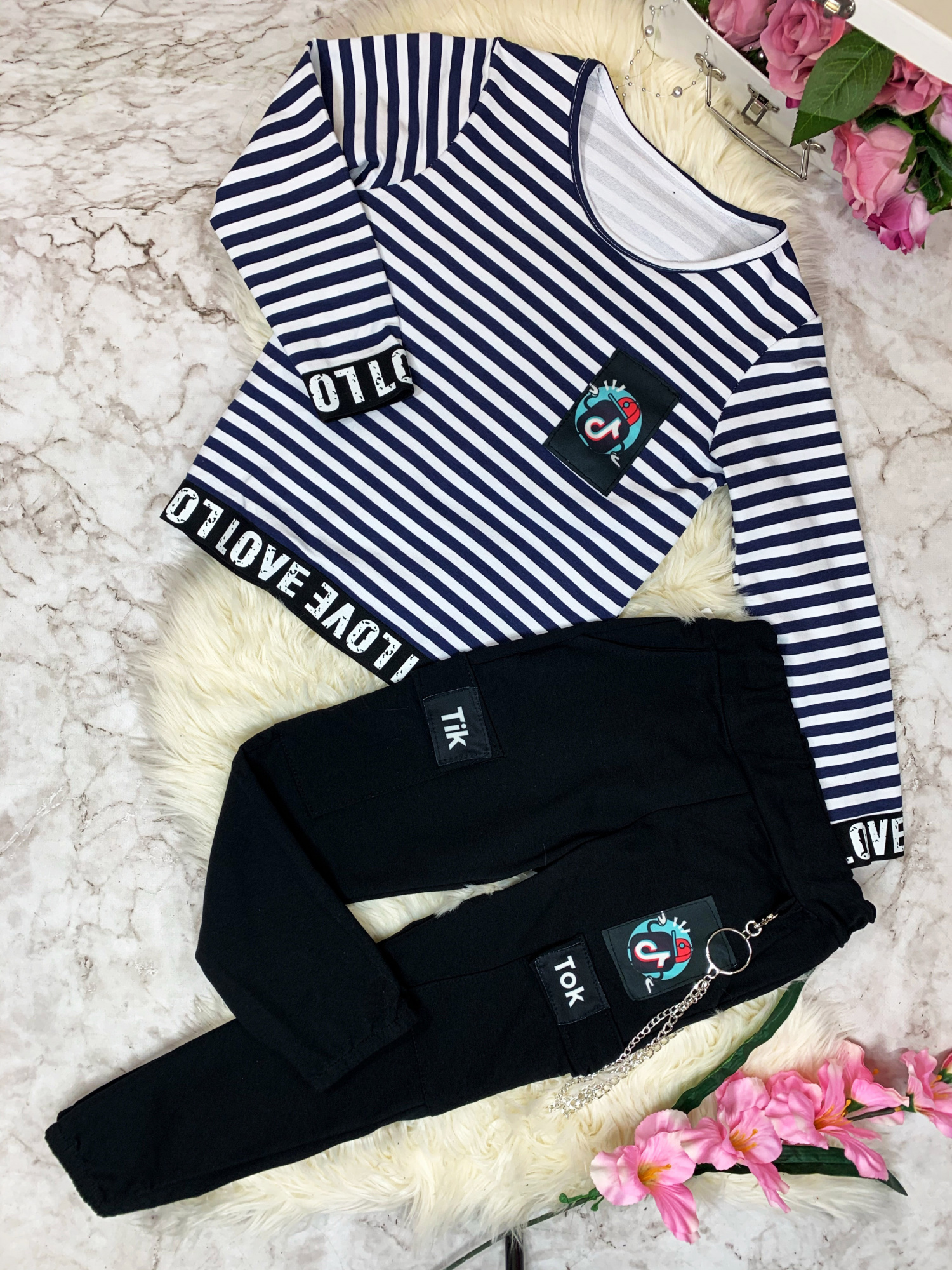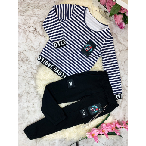 - rewelacyjny komplet: bluza w granatowe paski + spodnie w kolorze czarnym