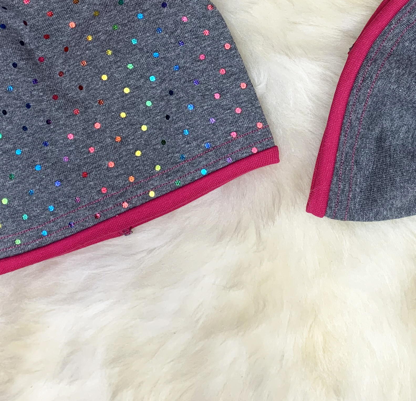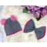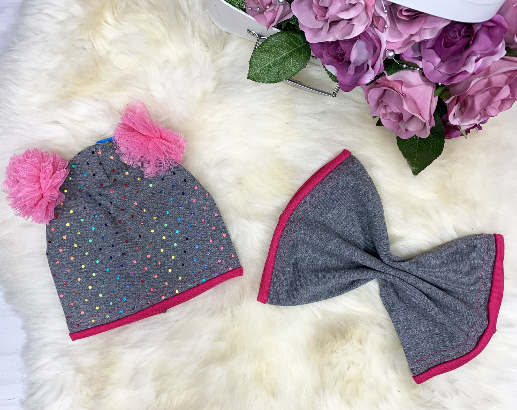Komplet Połyskujące Groszki Czapka + Komin - Grafit + Fuksja