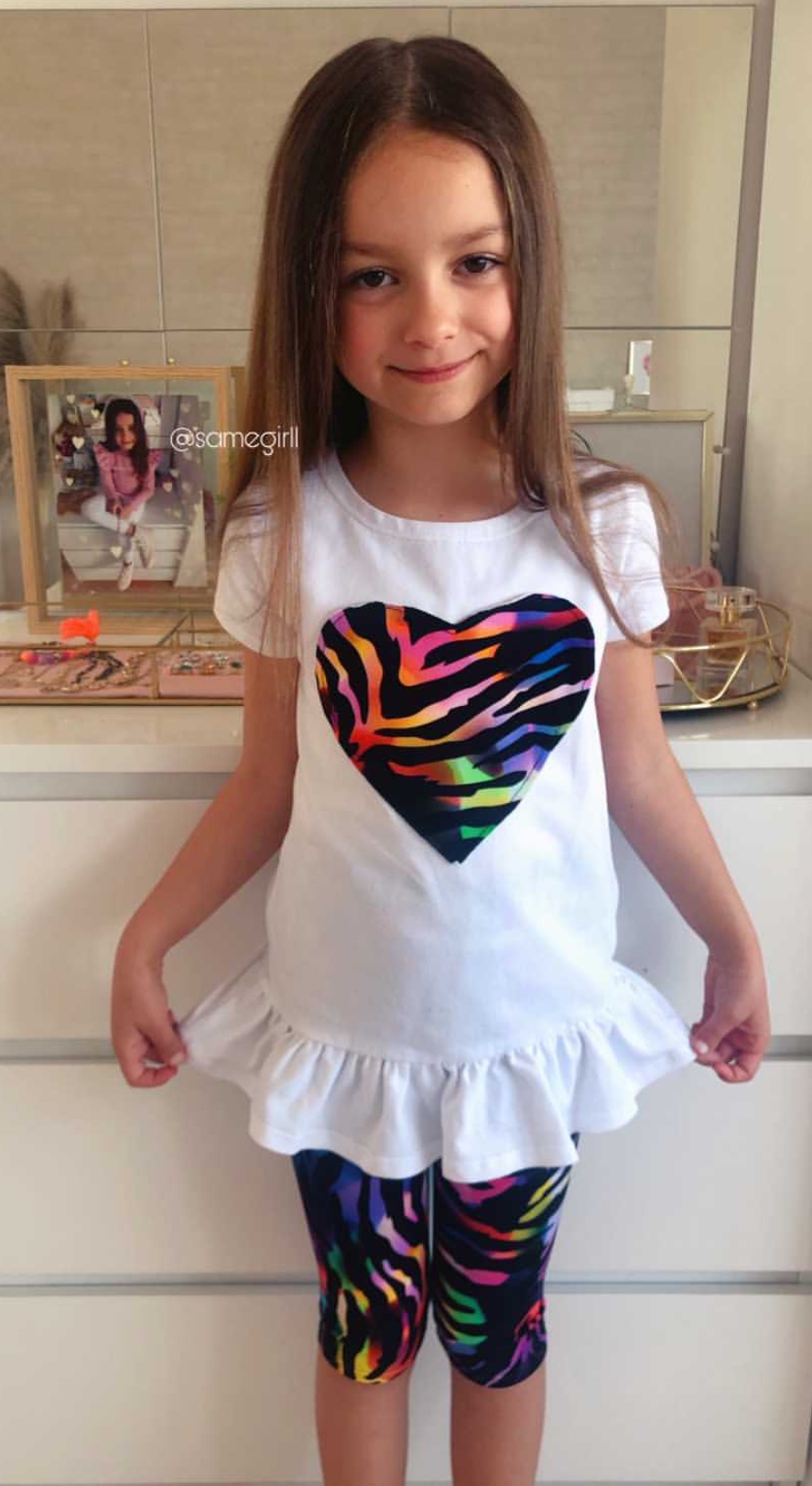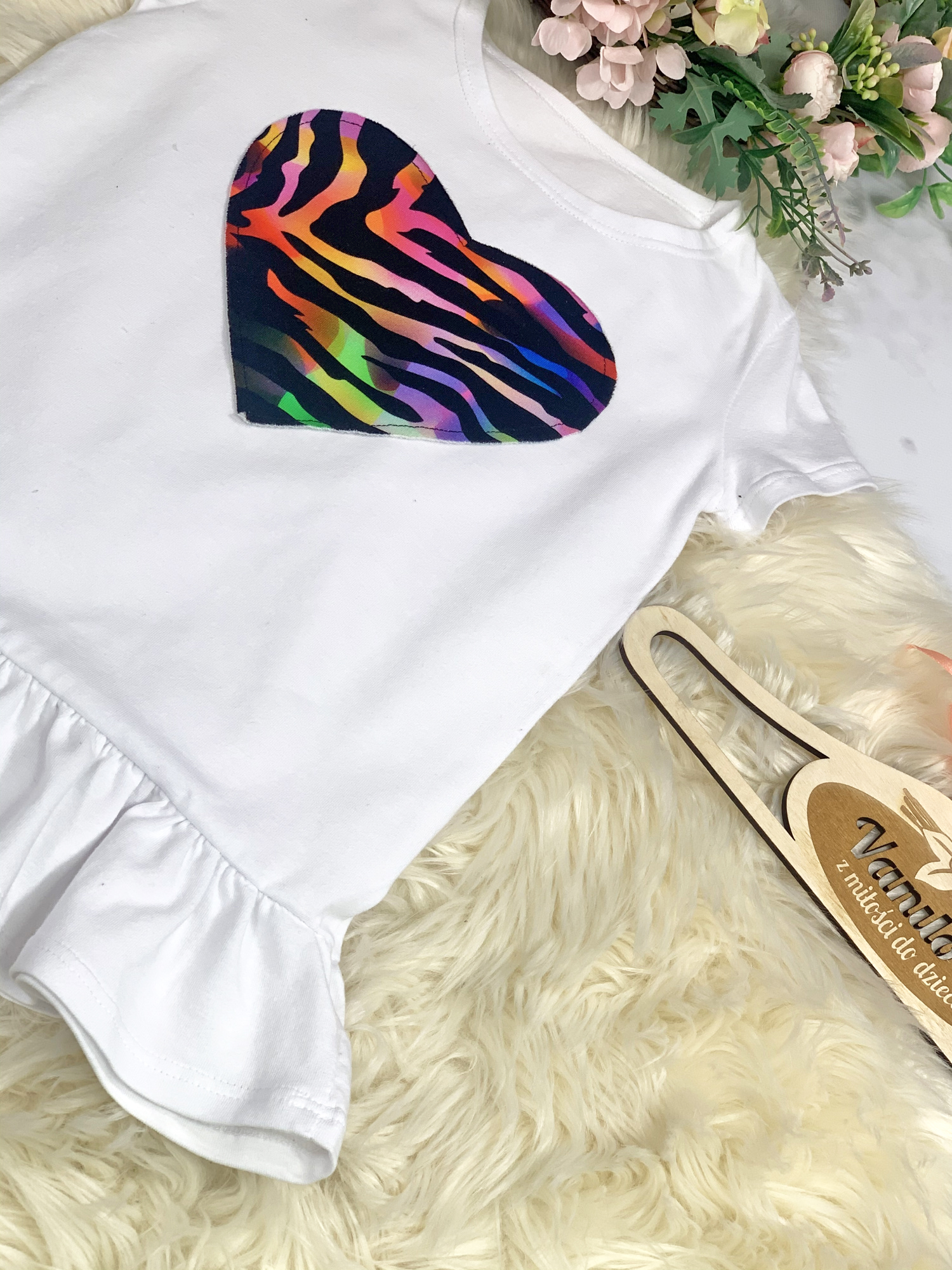 - bluzka zdobiona naszywką w kształcie serca nadaję niepowtarzalny styl