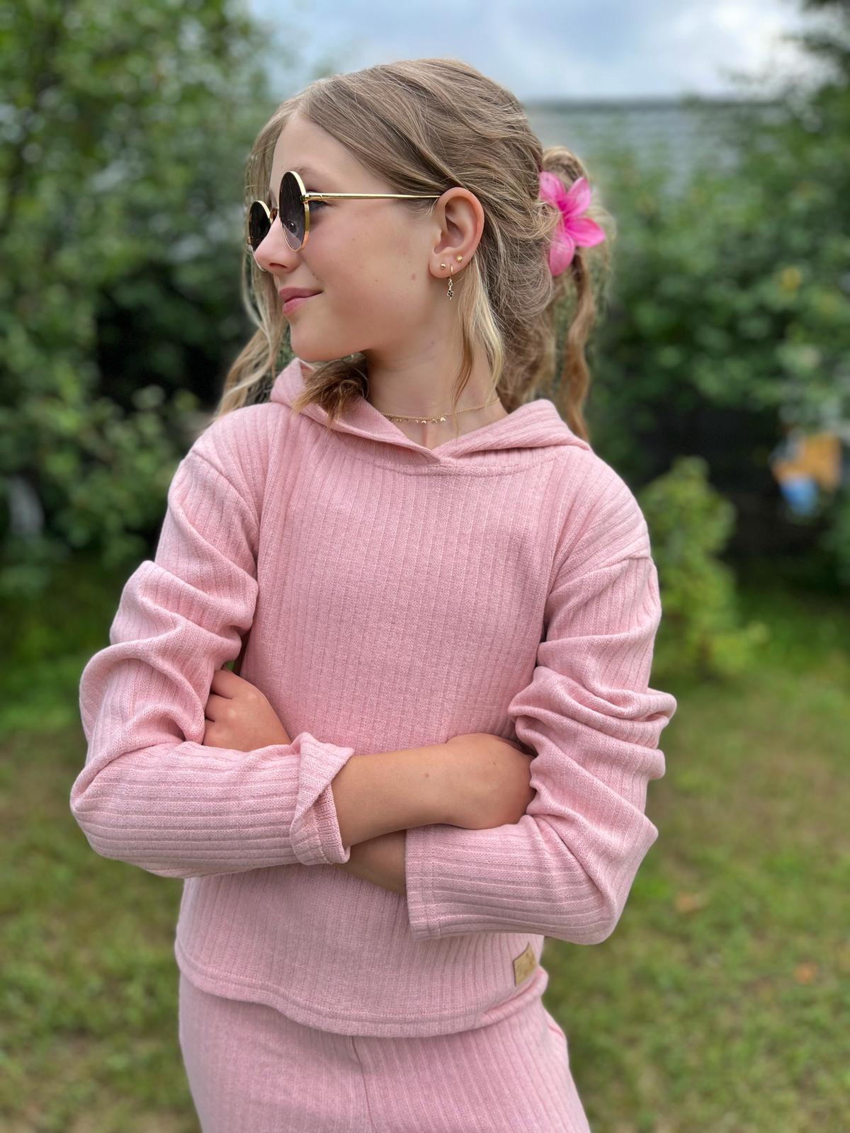 - w komplecie bluza z kapturem oraz spodnie dzwony