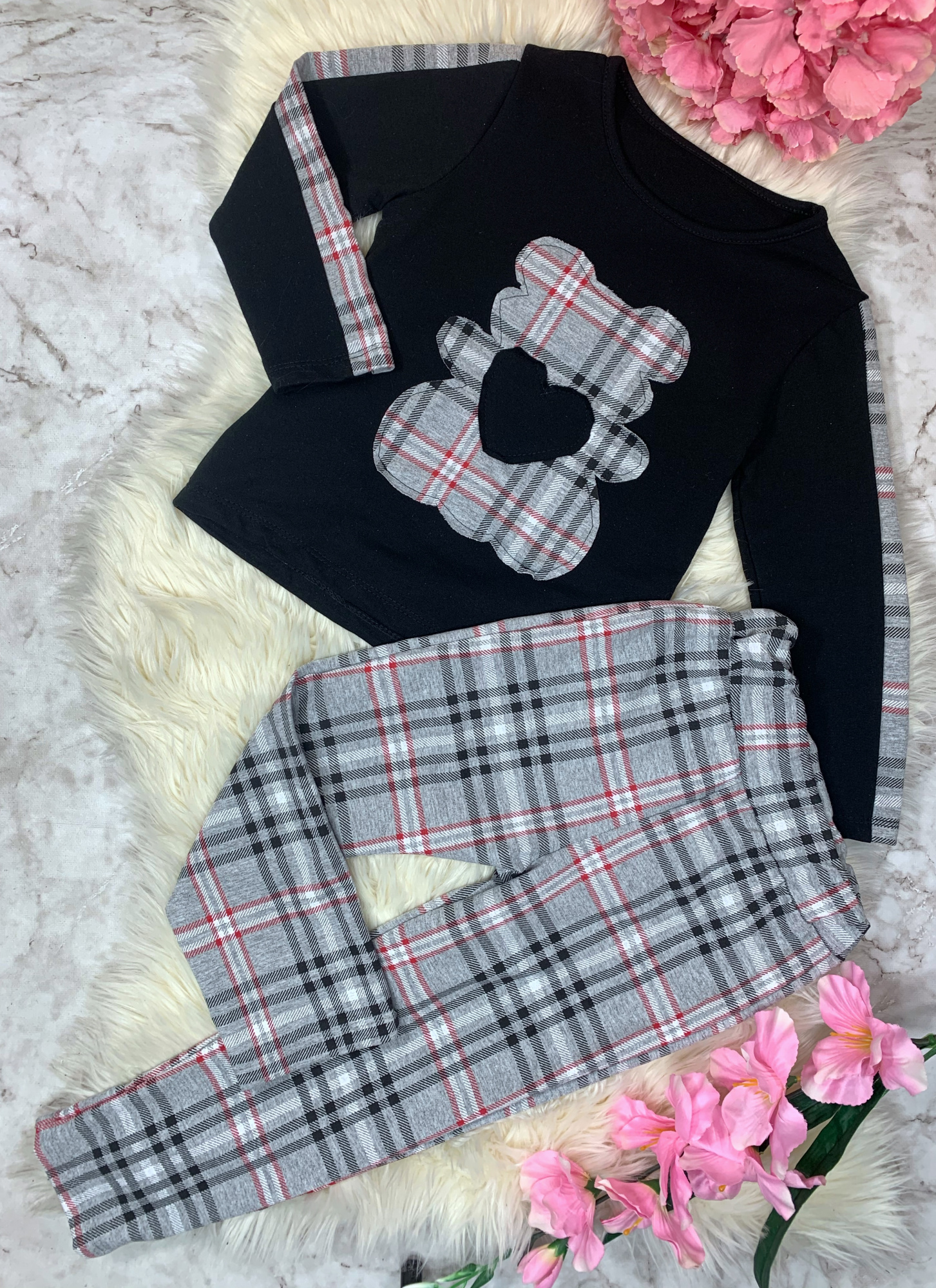 - bluzka z nszywką Teddy Bear, na rękawach zdobiona modnym lampasem w kratkę
