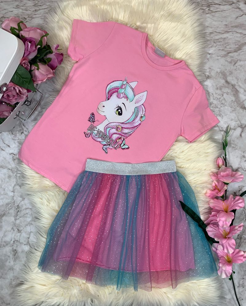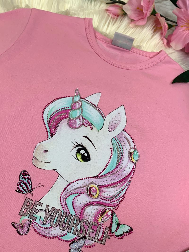 - bluzka ozdobiona jednorożcem zdobiona cyrkoniami