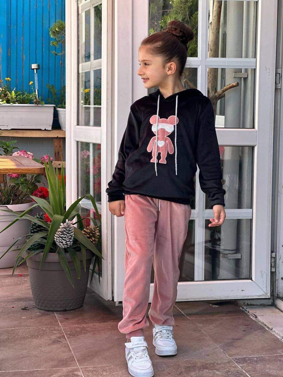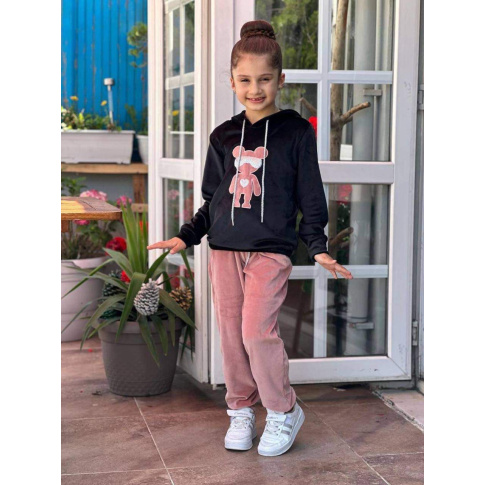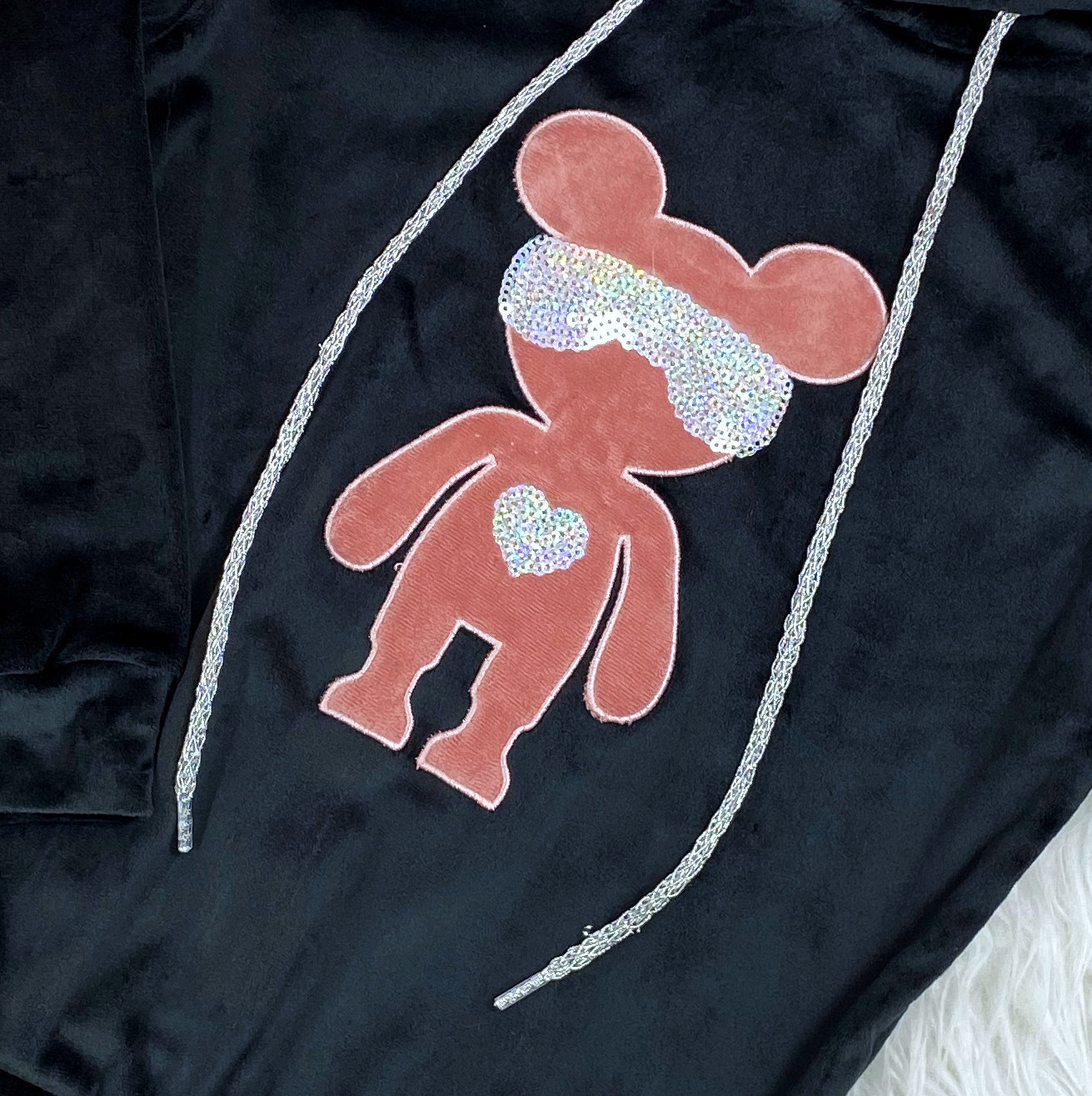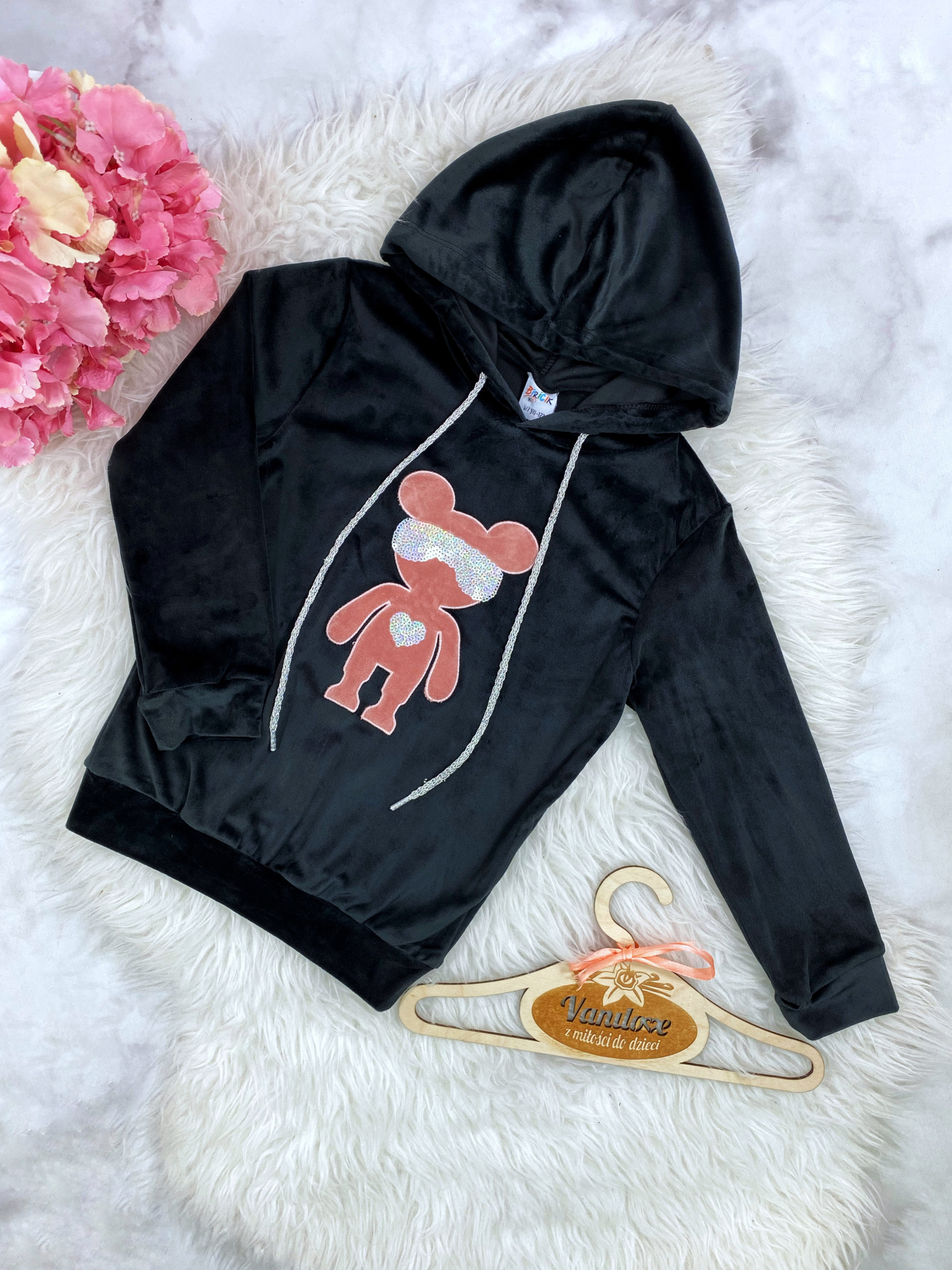 - bluza z kapturem zdobi naszyty miś z cekinami