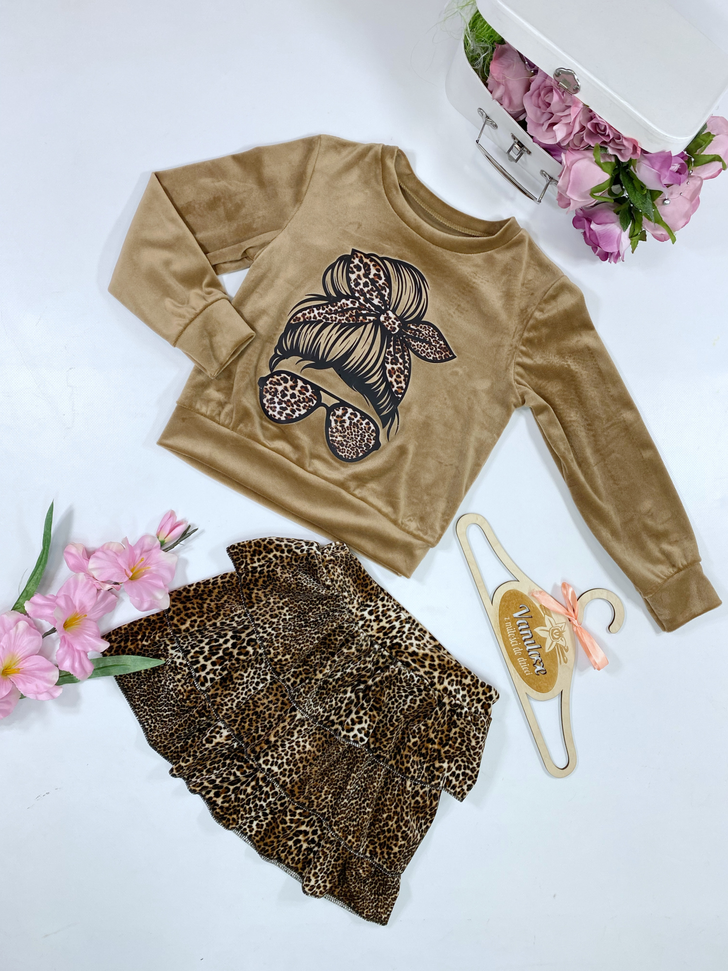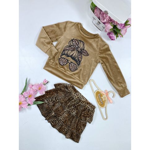 Komplet welurowy dla dziewczynki Crazy Girl Beż