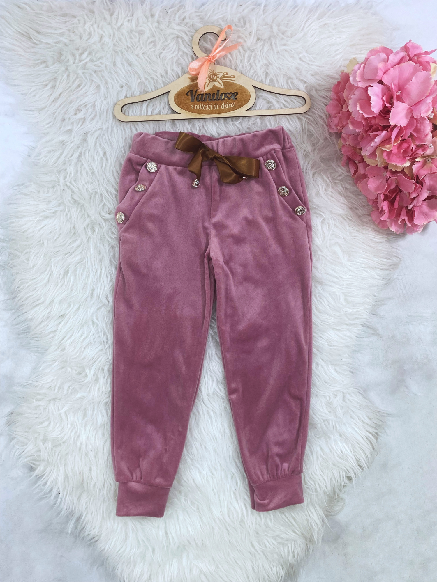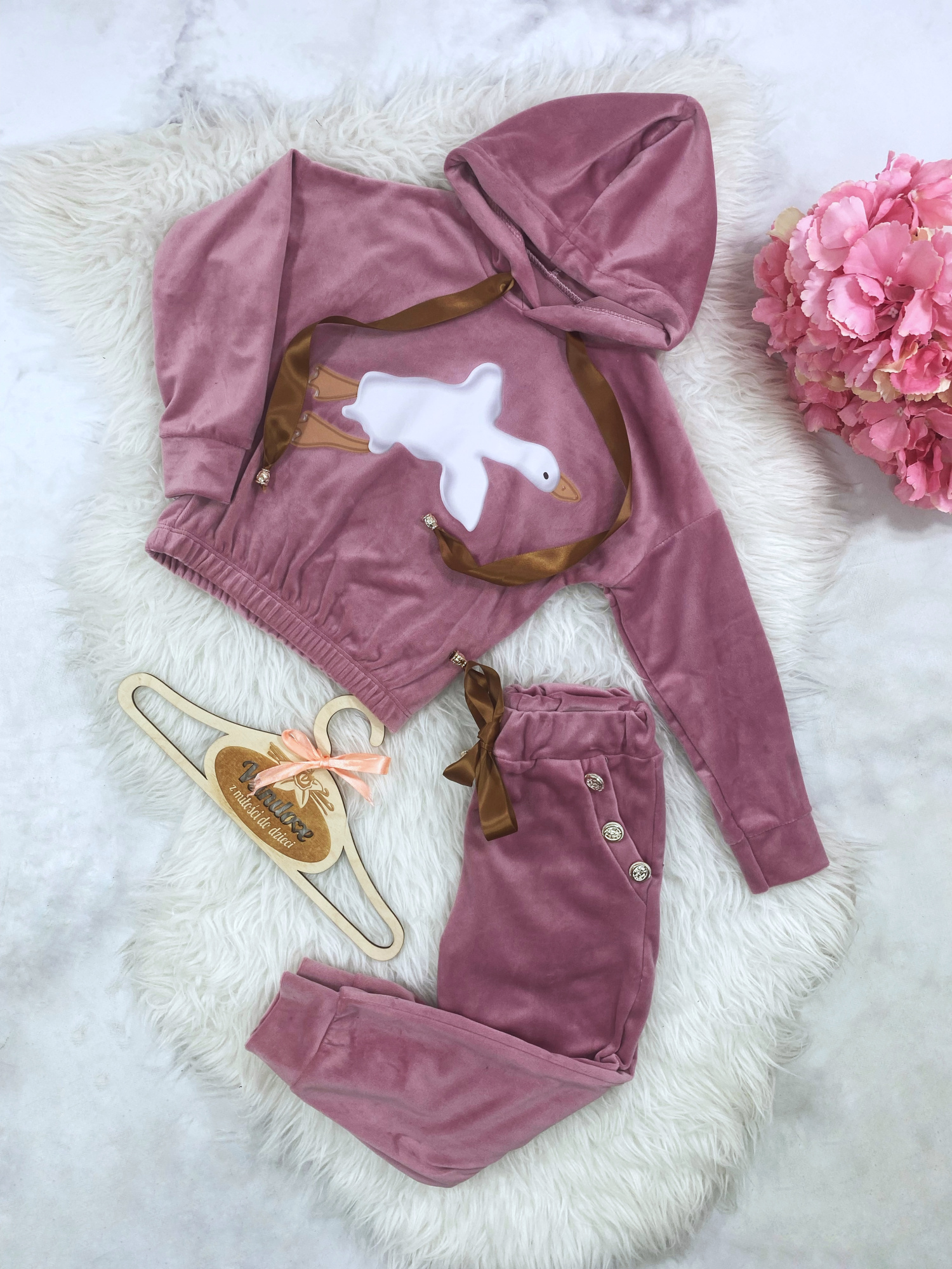 - wygodny welurowy komplet dziewczęcy z najnowszej kolekcji