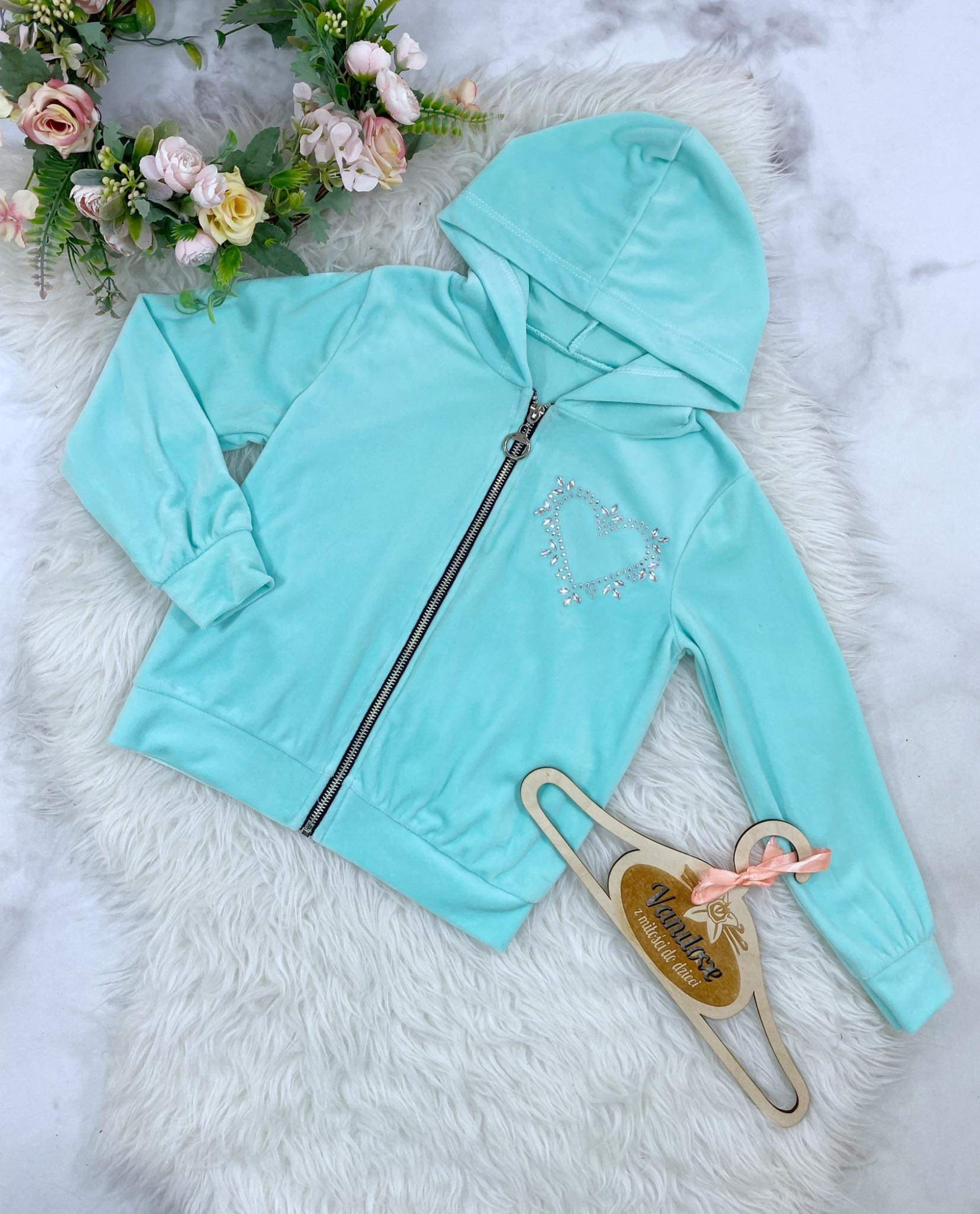 - bluza zapinana na zamek z kapturem, zdobiona naszywką serduszkiem z cyrkonii