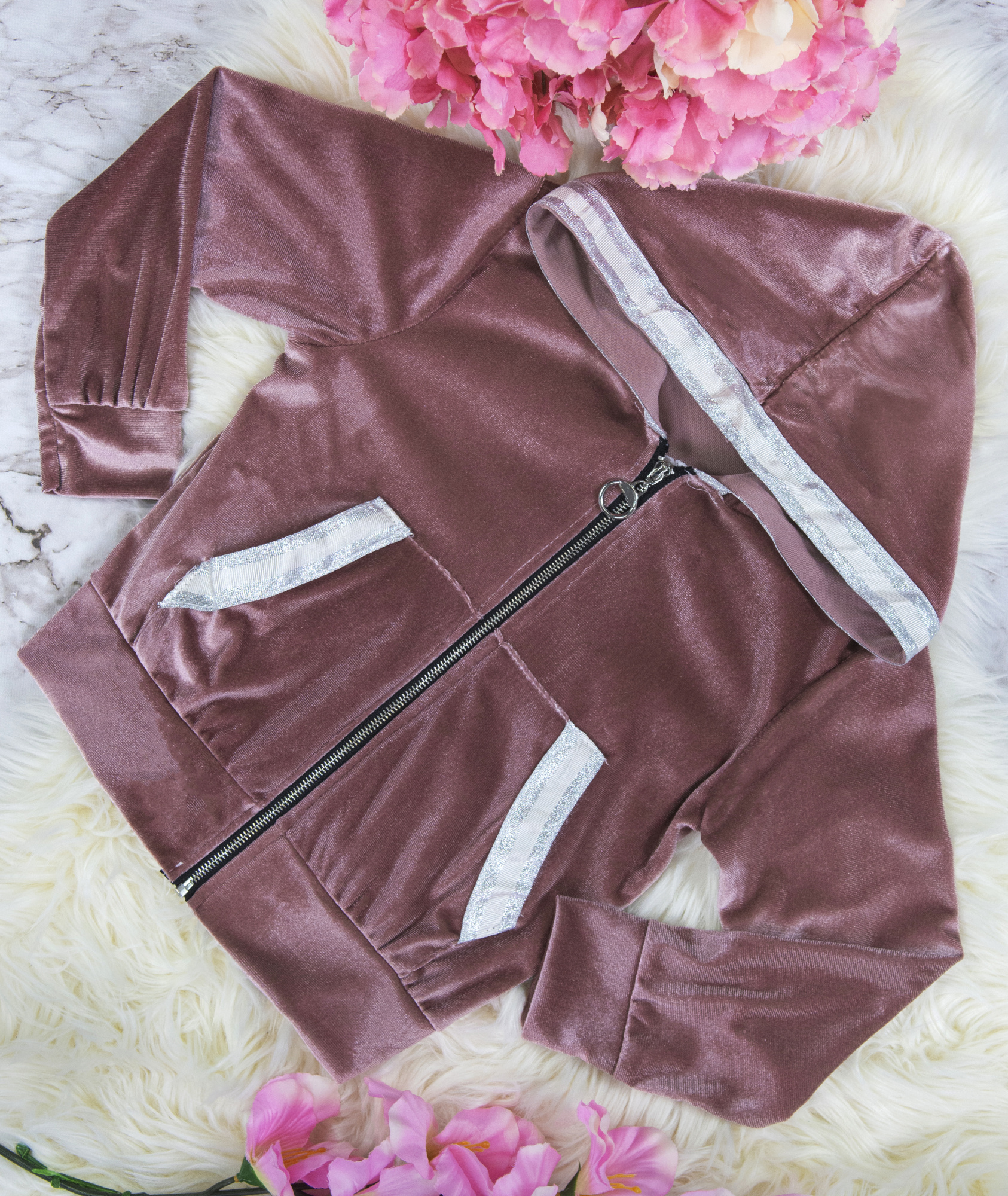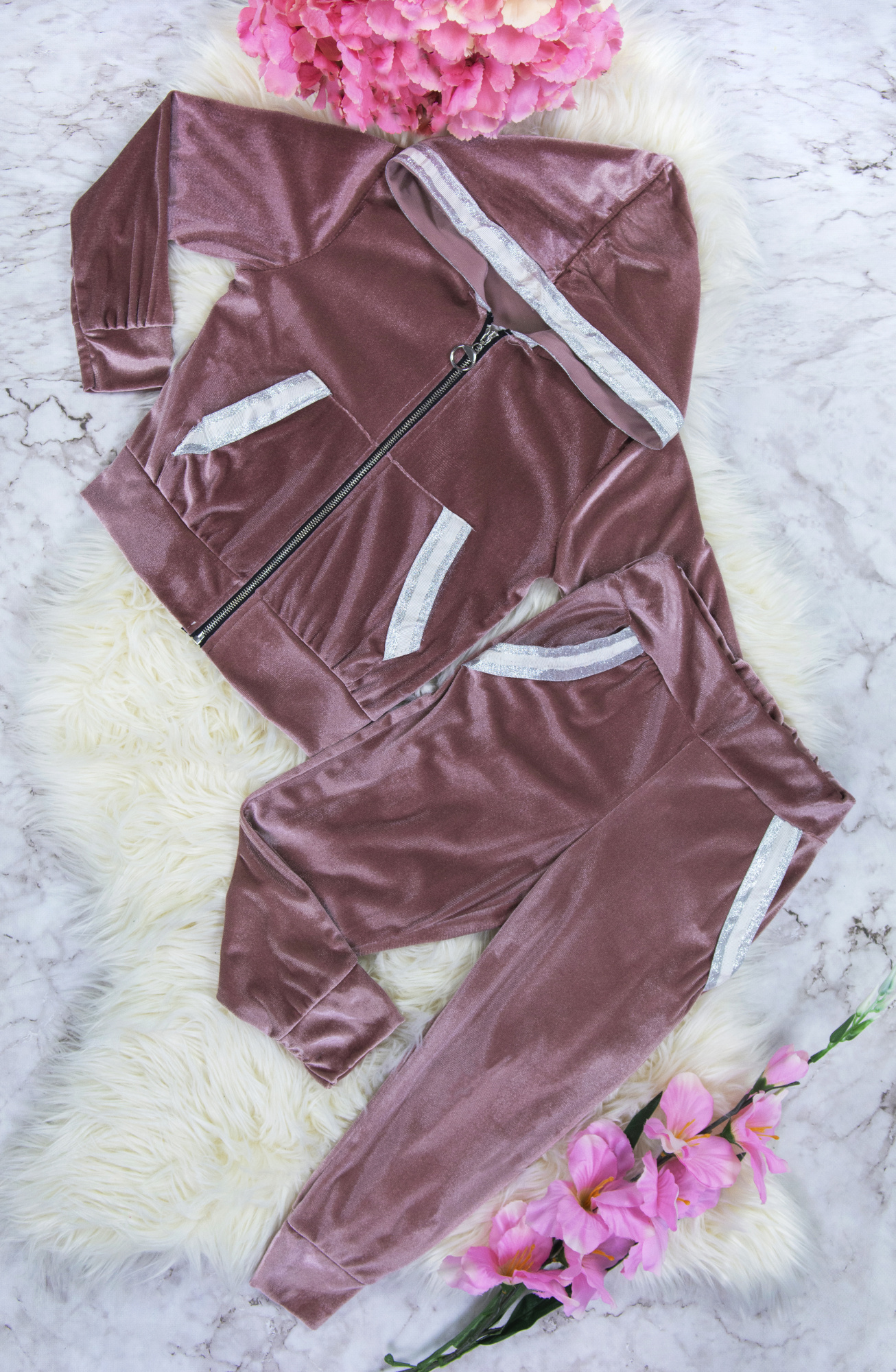 Komplet Welurowy dla Dziewczynki Rodos - Puder