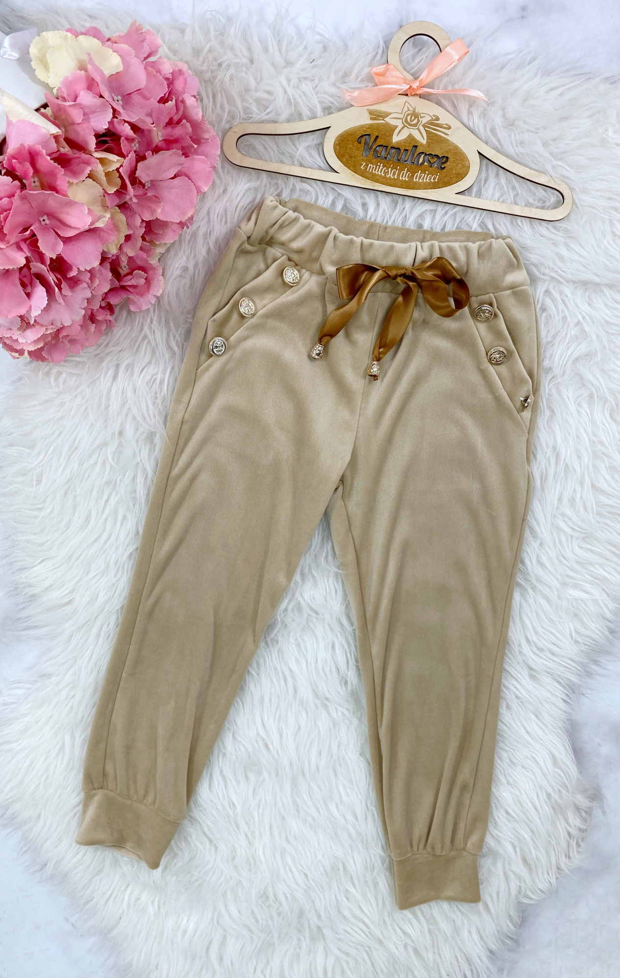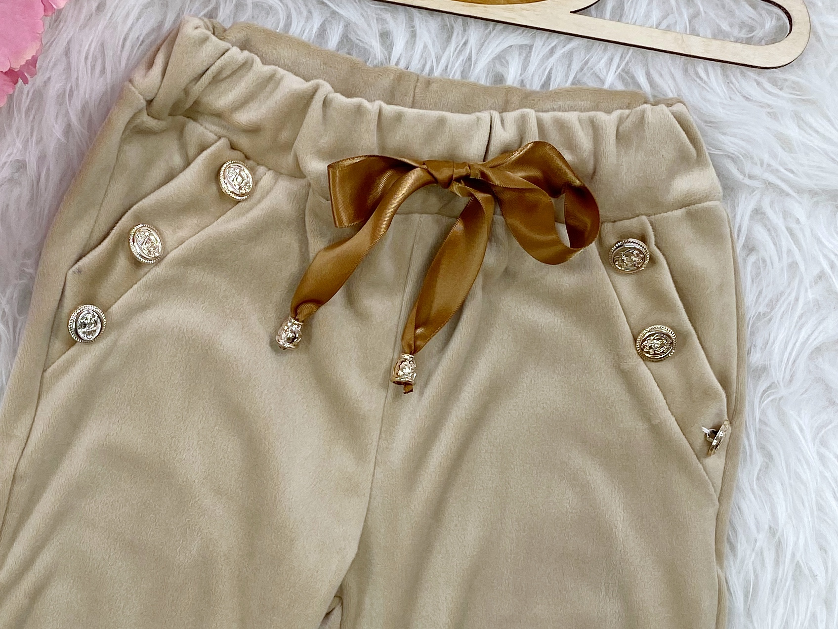 - spodnie dresowe z kieszonkami, obok kieszonek ozodbne złote guziczki