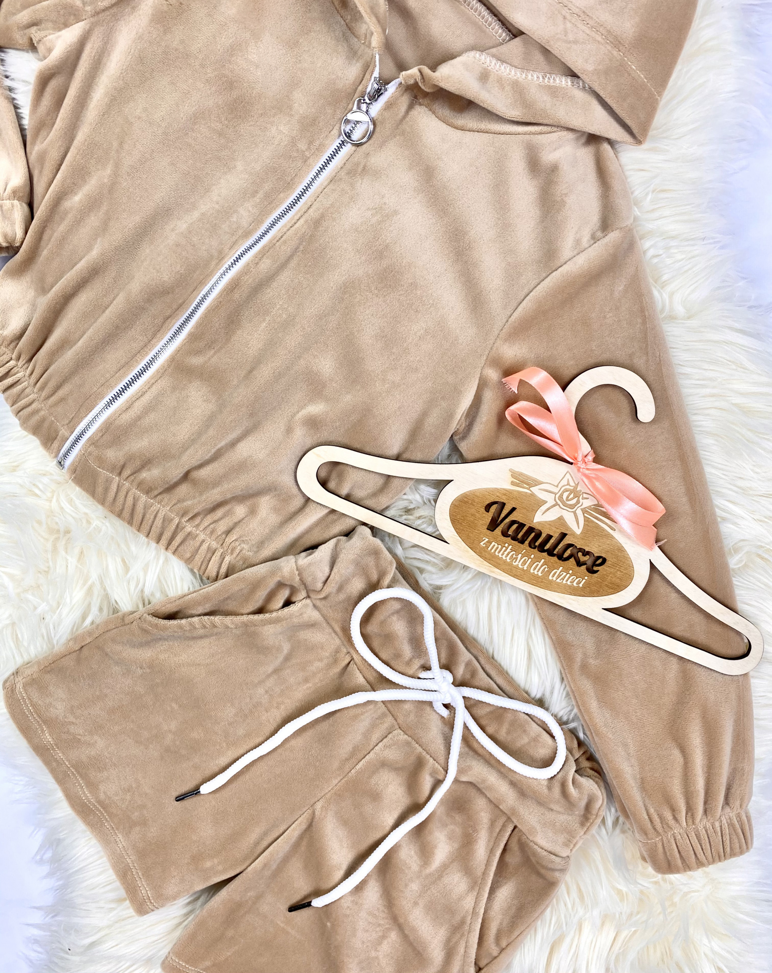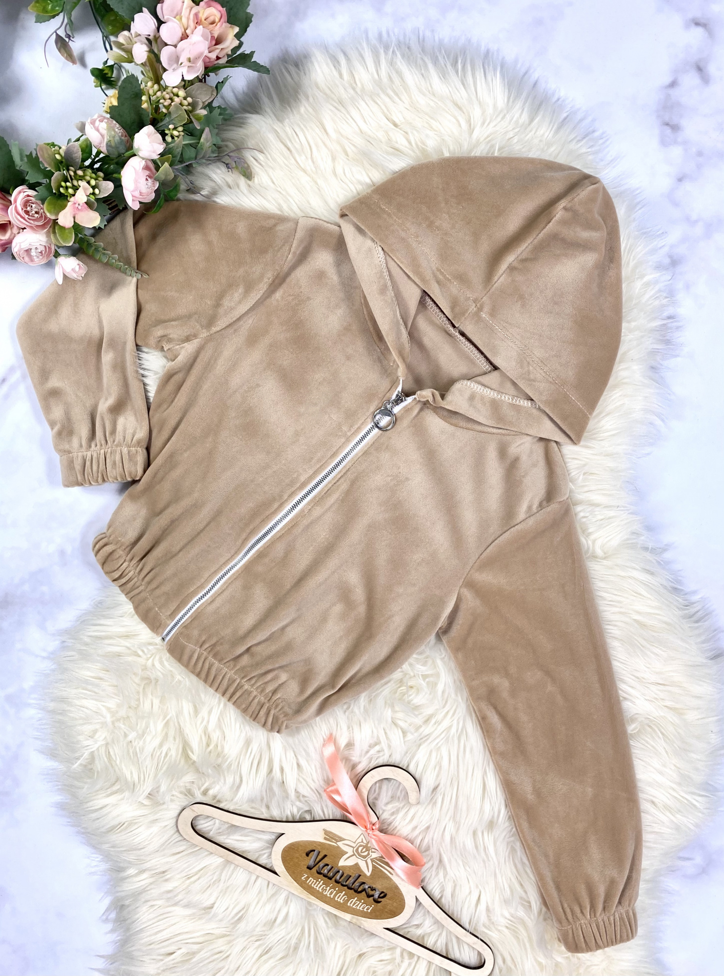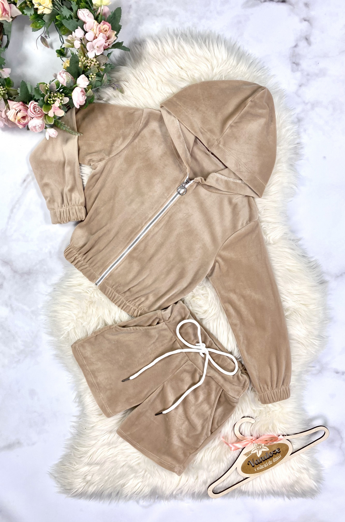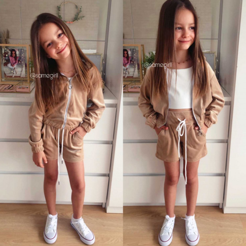 Komplet welurowy dla Dziewczynki Velvet - Beż