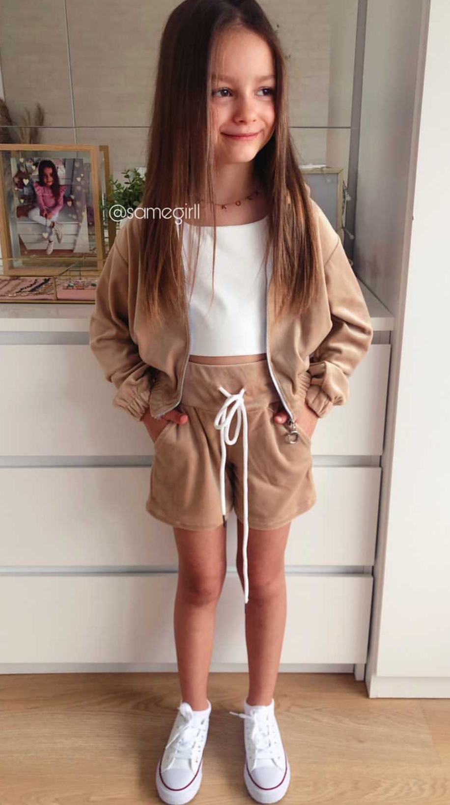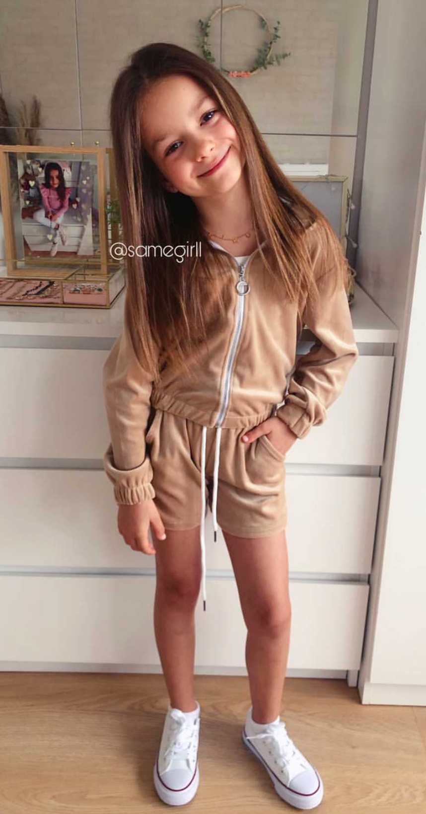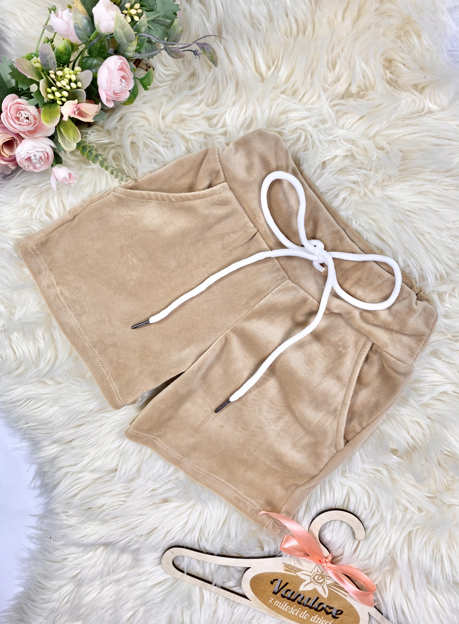 Komplet welurowy dla Dziewczynki Velvet - Beż