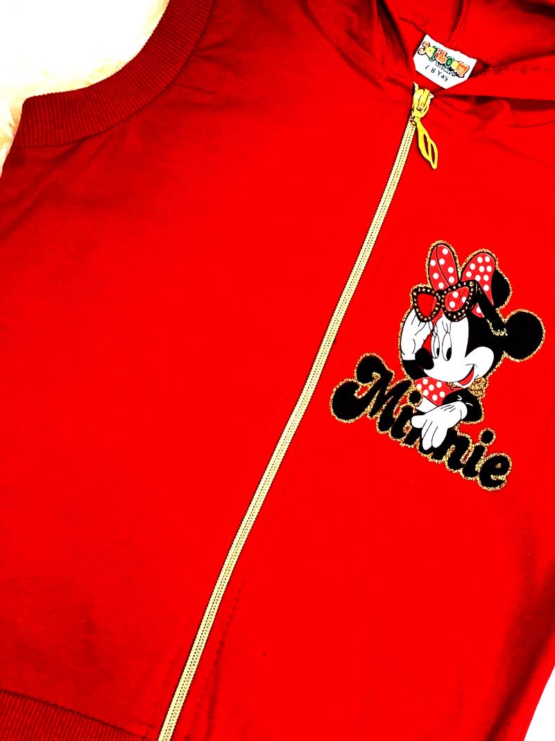 - kamizelka ze ściągaczem na dole, zapinana z kapturem i nadrukiem myszki