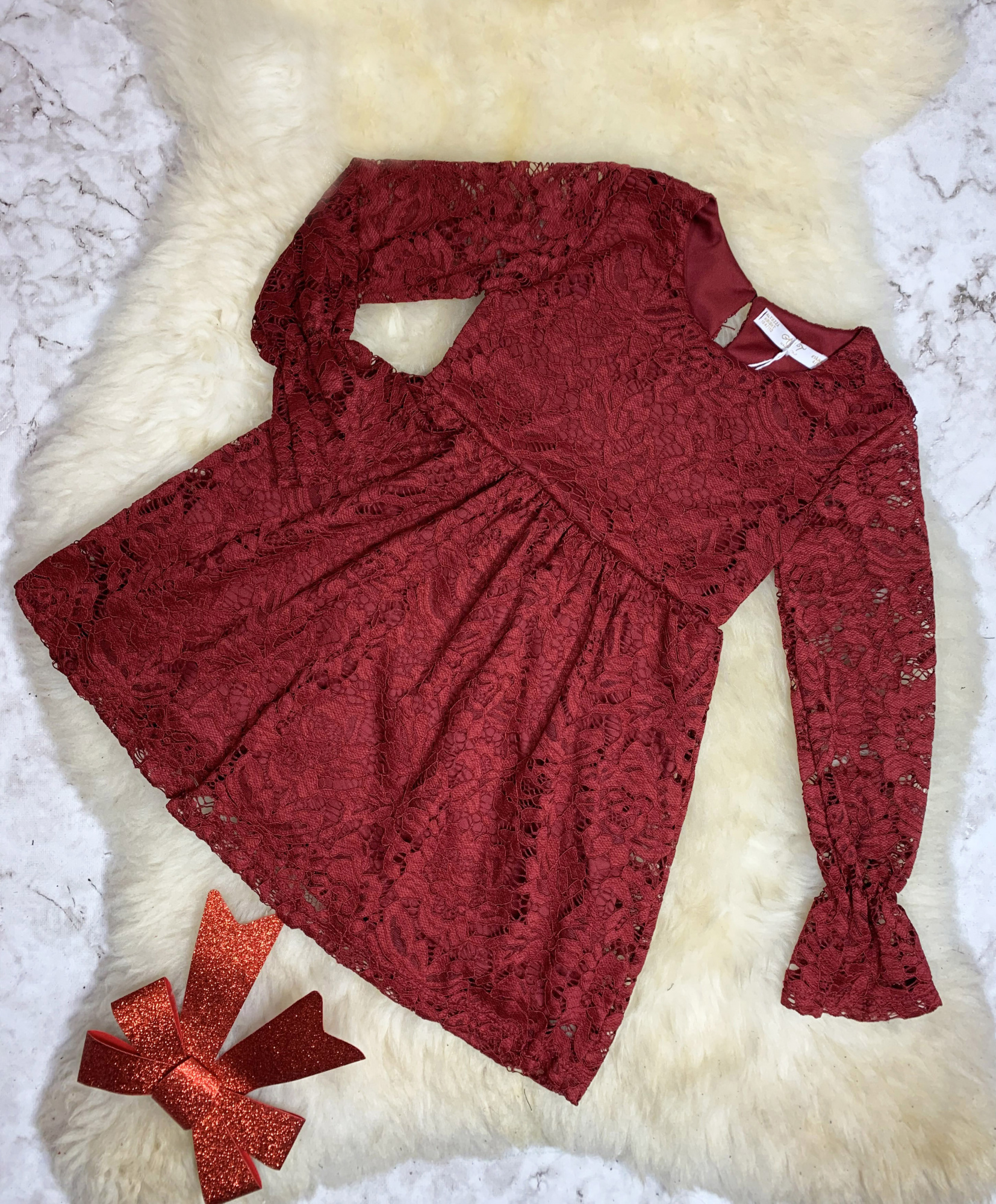 Koronkowa Sukienka Dla Dziewczynki - kolor bordowy