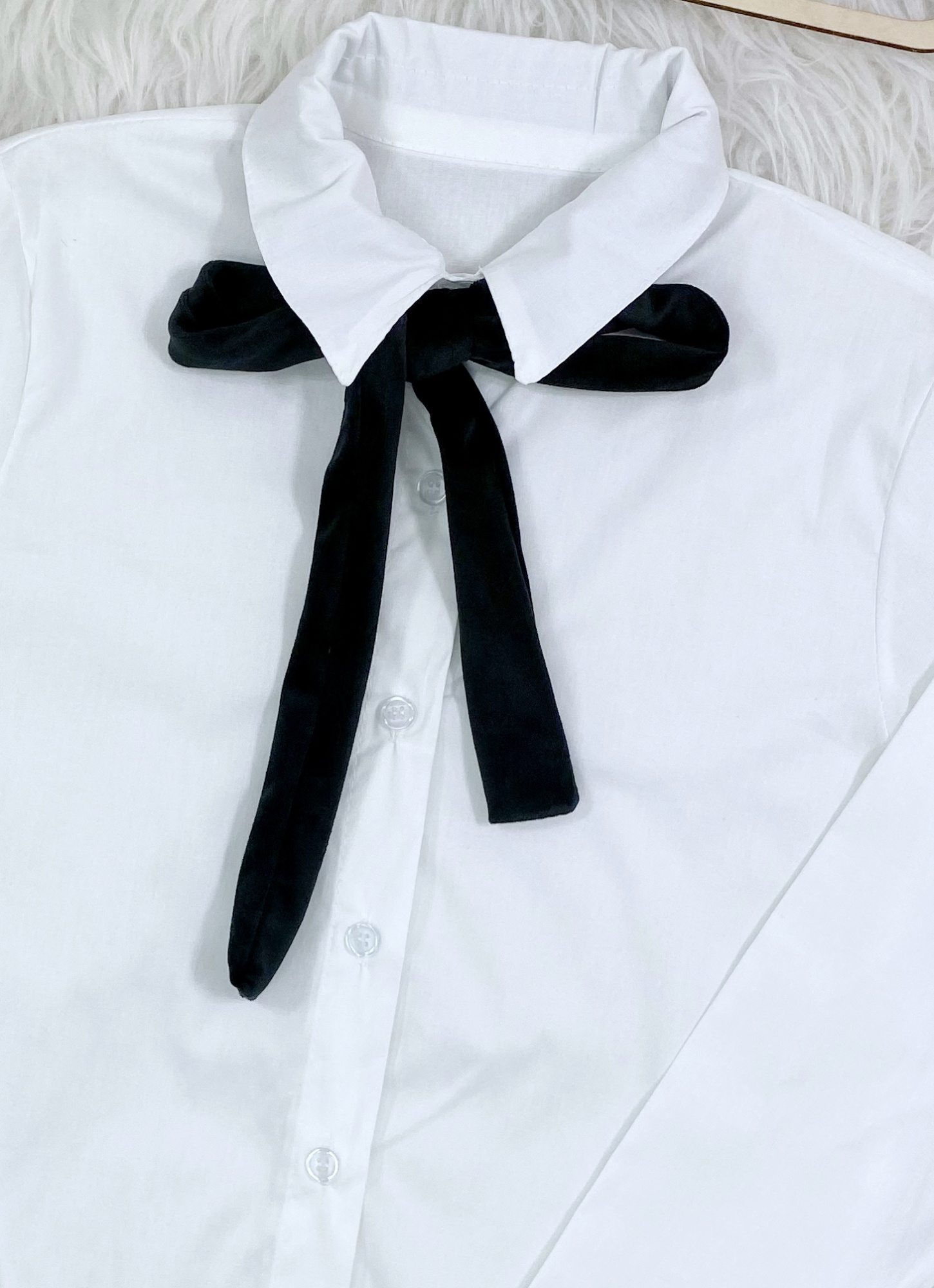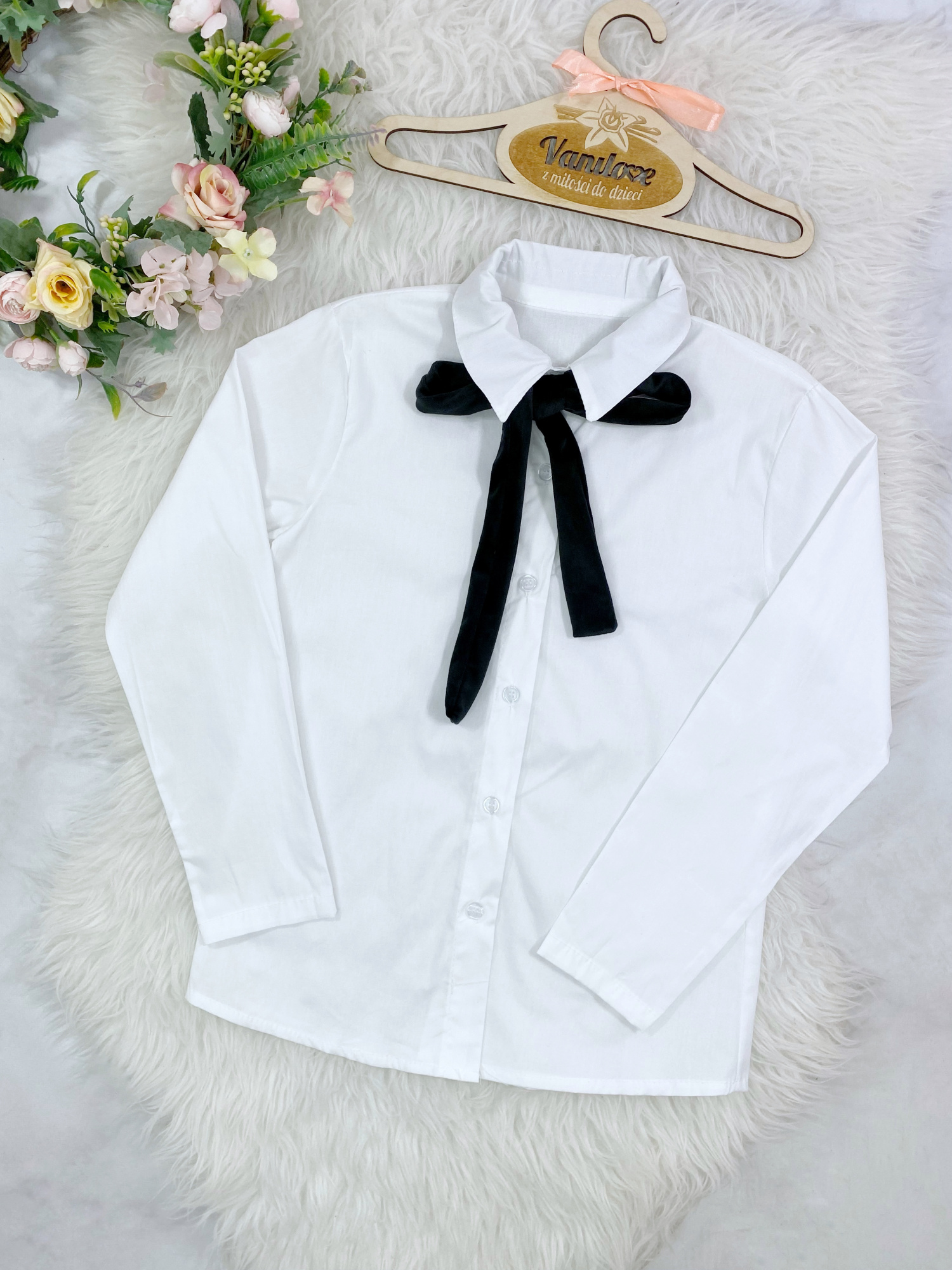 • elegancka koszula zapinana na guziczki wiązana na welurową czarną kokardkę