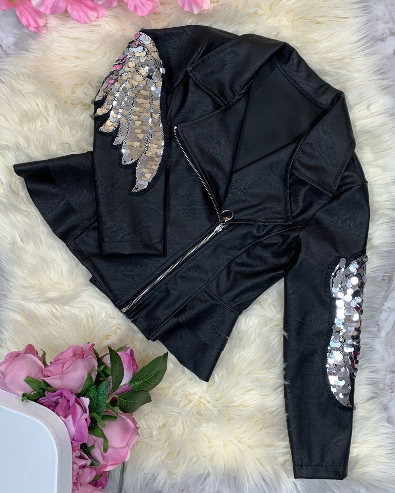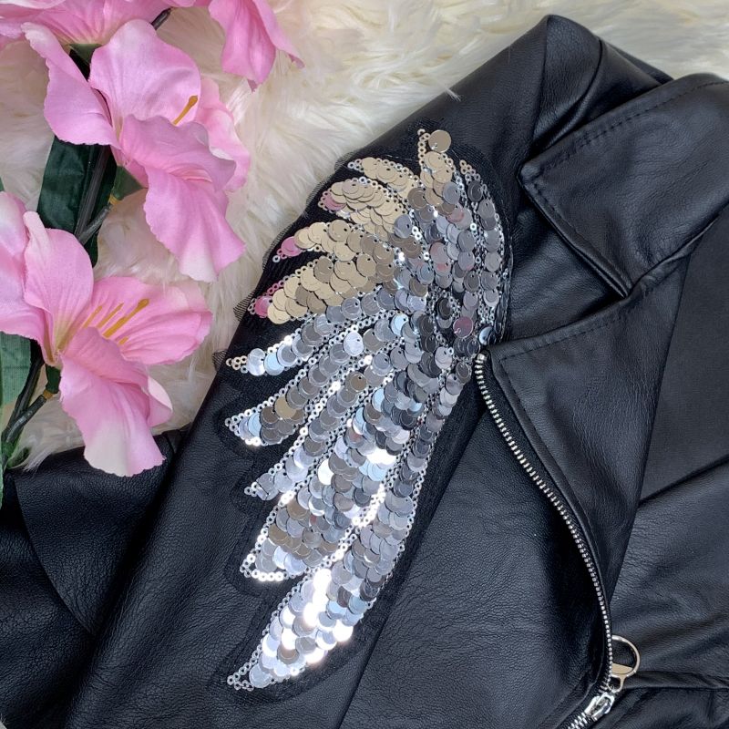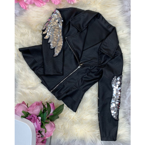 • na rękawach ozdobiona srebrnymi cekinami w postaci modnych skrzydeł